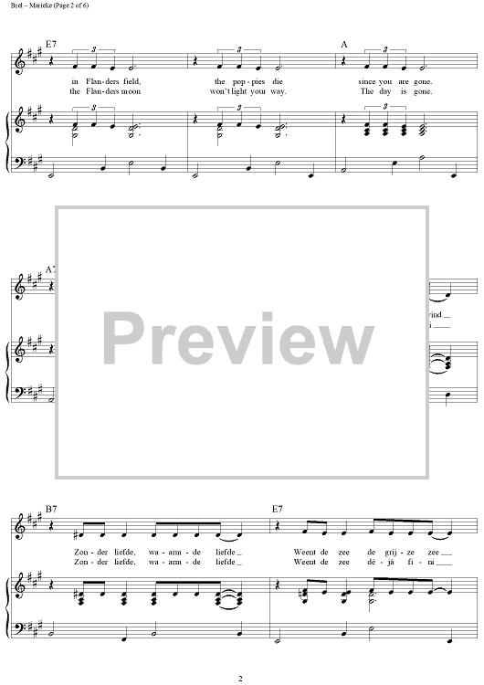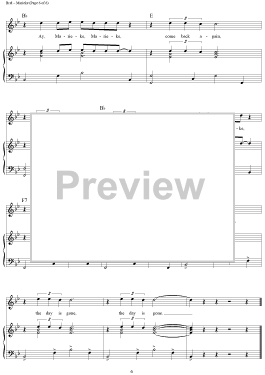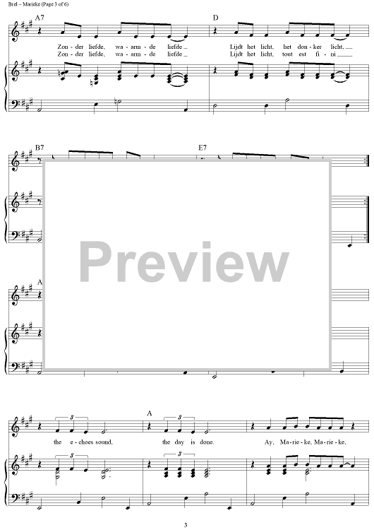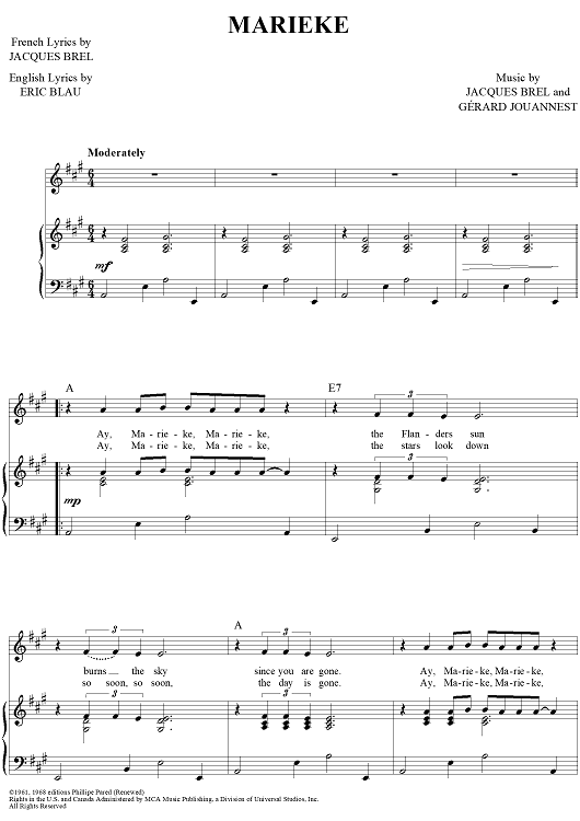 Digital Sheet Music for Marieke by Jacques Brel, Gerard Jouannest scored for Piano/Vocal/Chords; id:431622