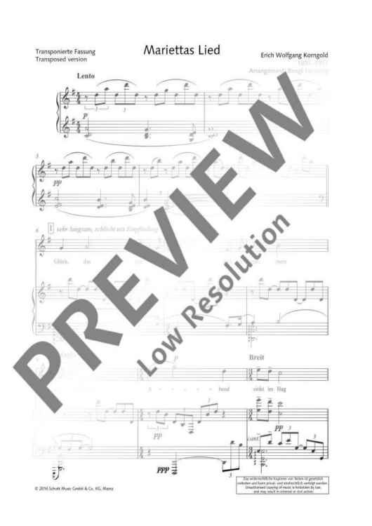 "Mariettas Lied - Score and Parts" Sheet Music by Erich Wolfgang Korngold