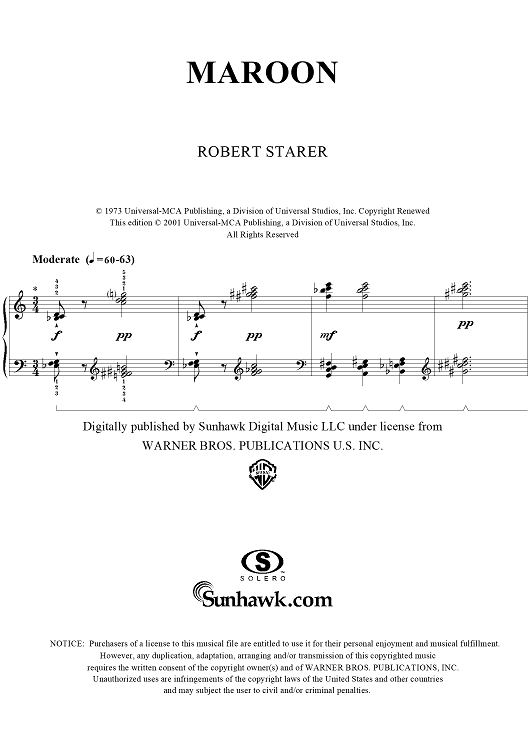 "Maroon" Sheet Music by Robert Starer