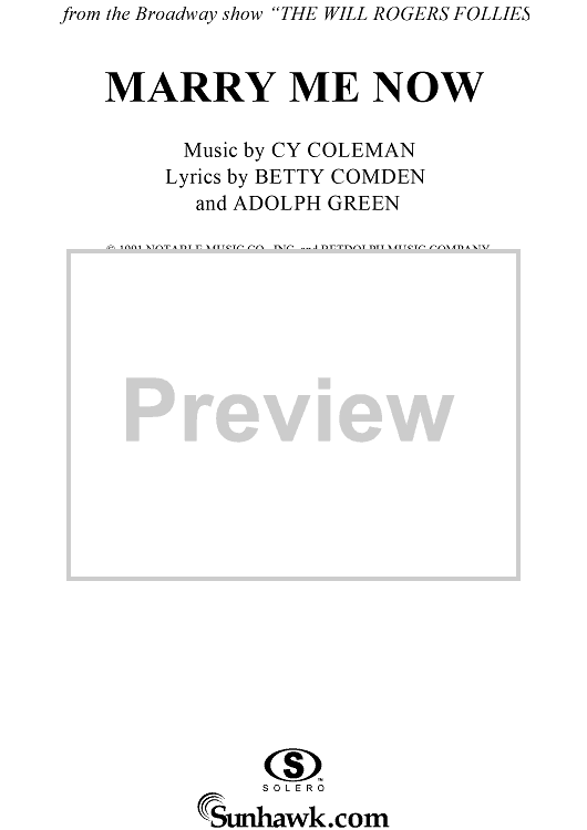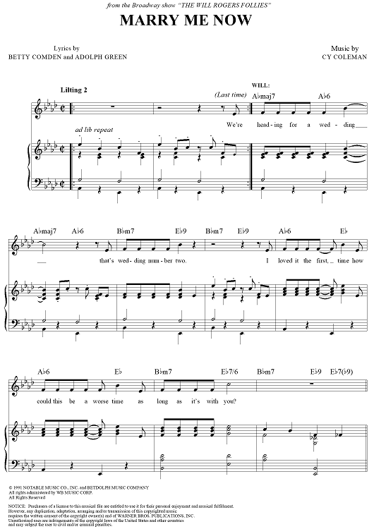 Digital Sheet Music for Marry Me Now by Cy Coleman, Betty Comden, Adolph Green scored for Piano/Vocal/Chords; id:272368