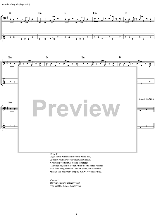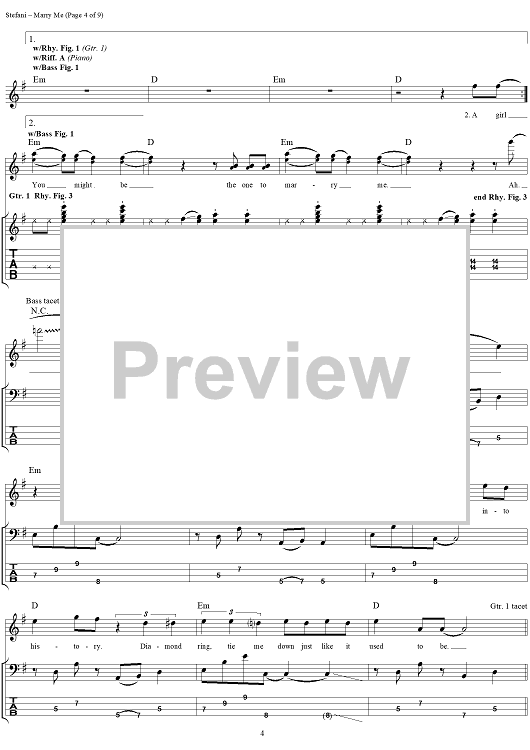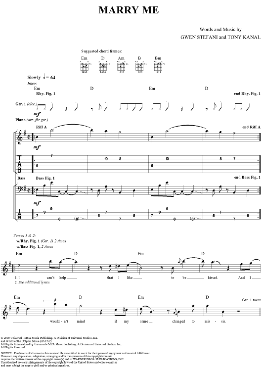 "Marry Me" Sheet Music by No Doubt