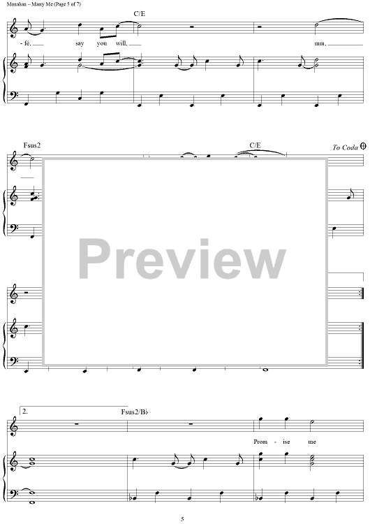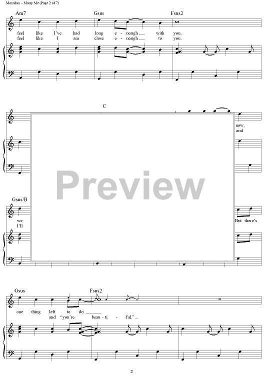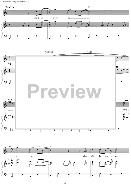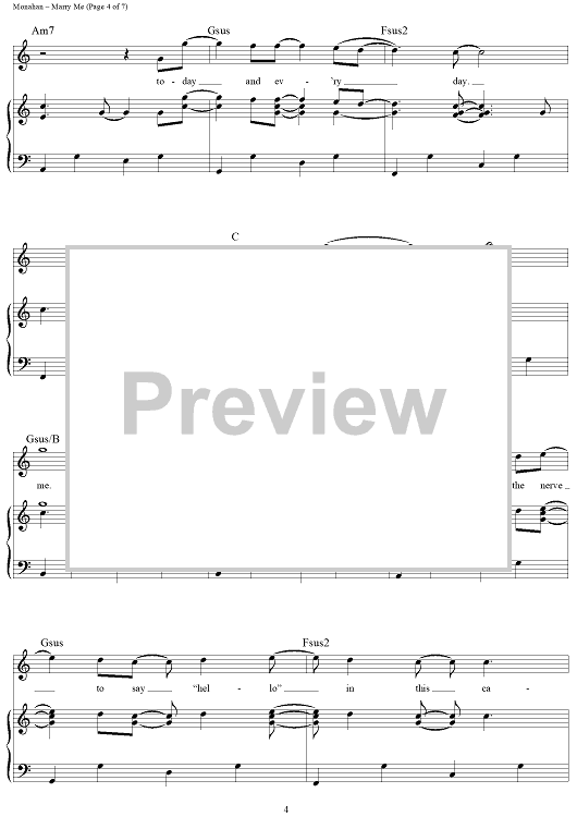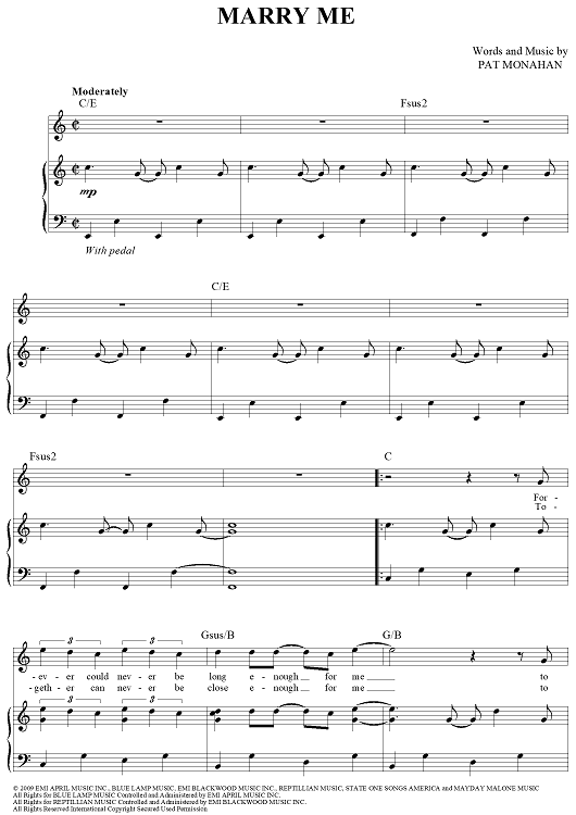 Digital Sheet Music for Marry Me by Pat Monahan, Train scored for Piano/Vocal/Chords; id:421464
