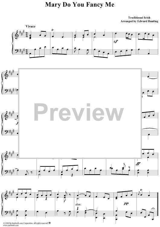 Digital Sheet Music for Mary Do You Fancy Me by , Edward Bunting, Traditional scored for Piano Solo; id:166108