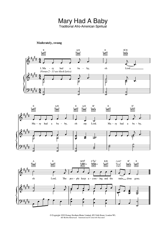 Digital Sheet Music for Mary Had A Baby by scored for Piano/Vocal/Chords; id:378668