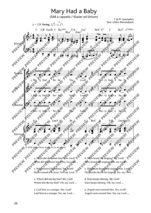 Digital Sheet Music for Mary Had A Baby by Ulrike Wenckebach scored for Mixed Choir (sab) And Piano; id:499143