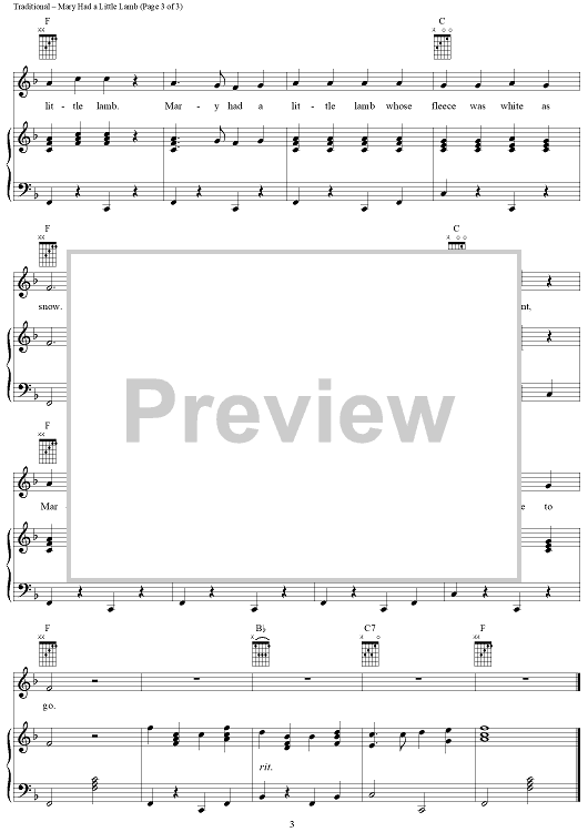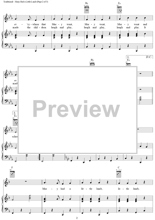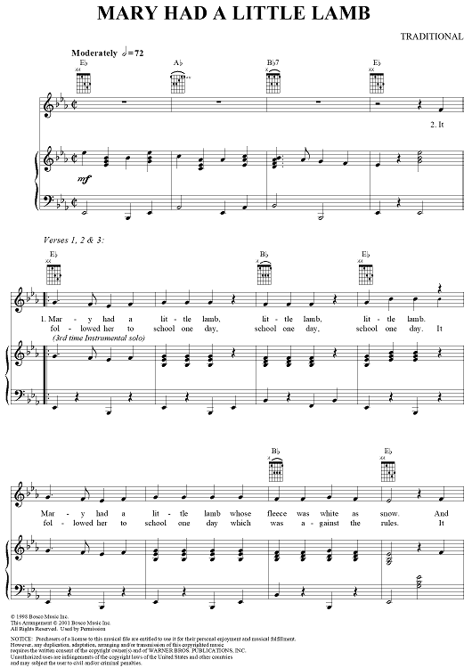 Digital Sheet Music for Mary Had a Little Lamb by Traditional scored for Piano/Vocal/Chords; id:289102