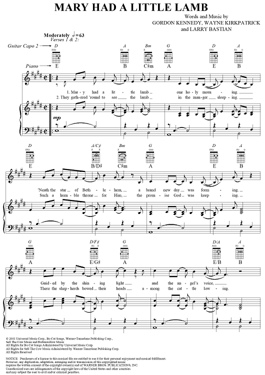 Digital Sheet Music for Mary Had a Little Lamb by Garth Brooks, Larry B. Bastian, Wayne Kirkpatrick, Gordon Kennedy scored for Piano/Vocal/Chords; id:293279