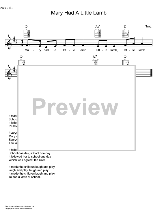 Digital Sheet Music for Mary Had a Little Lamb by SMN Archive Collection, Traditional scored for Lead Sheet; id:325207