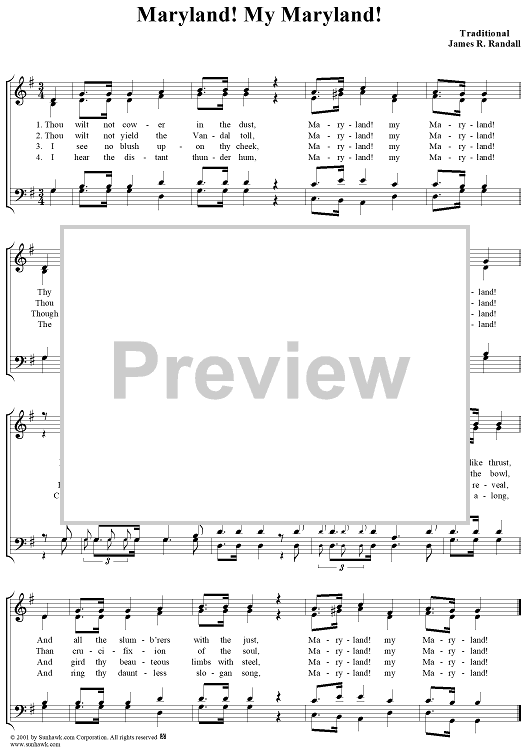 Digital Sheet Music for Maryland! My Maryland! by James R. Randall, Traditional scored for Four-part Mixed Chorus; id:262537