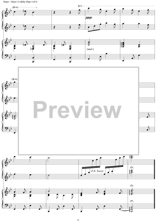 Digital Sheet Music for Mary’s Lullaby by Max Reger, Larry Shackley scored for 1 Piano, 4 Hands; id:434816
