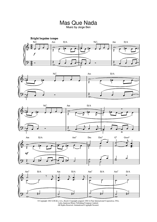 Digital Sheet Music for Mas Que Nada by Jorge Ben scored for Piano; id:375777