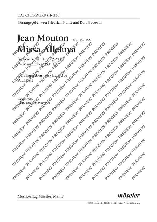 Digital Sheet Music for Mass "Alleluya" by Jean Mouton scored for Mixed Choir (satb); id:496323