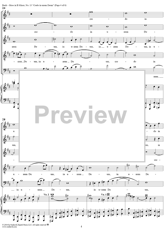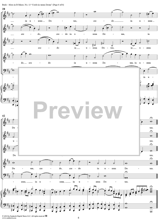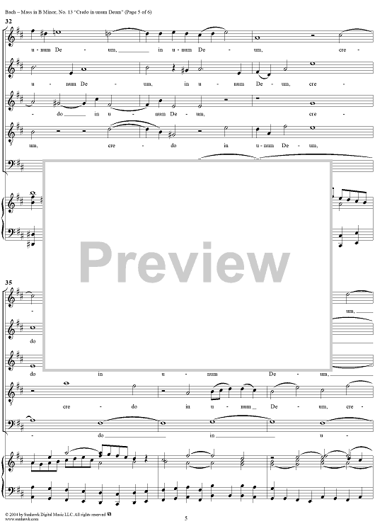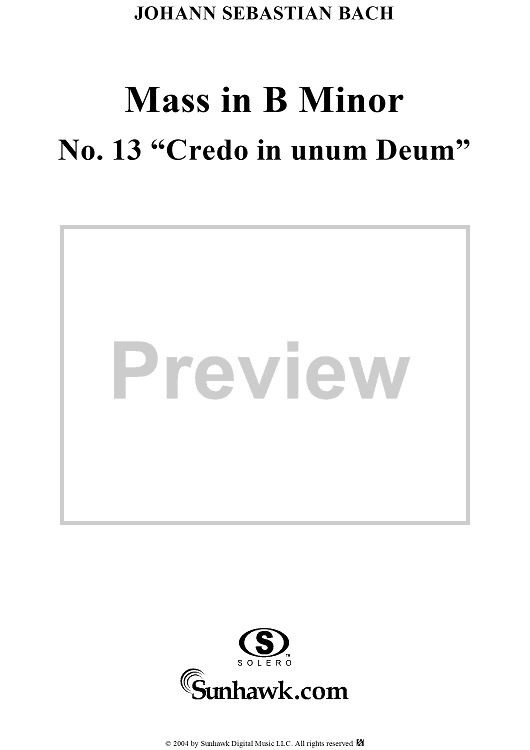 Digital Sheet Music for Mass in B Minor, BWV232, No. 13: "Credo in unum Deum" by Johann Sebastian Bach scored for Five-part Mixed Chorus; id:304771