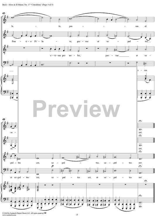 Digital Sheet Music for Mass in B Minor, BWV232, No. 17: "Crucifixus" by Johann Sebastian Bach scored for Four-part Mixed Chorus/Piano; id:304797