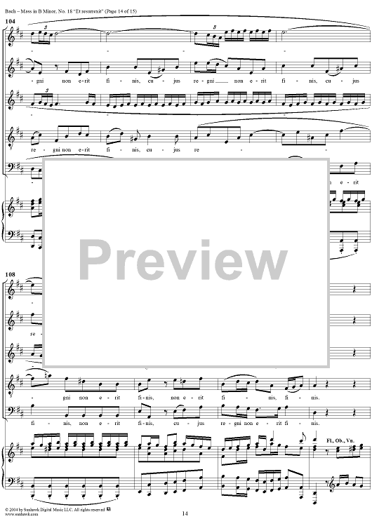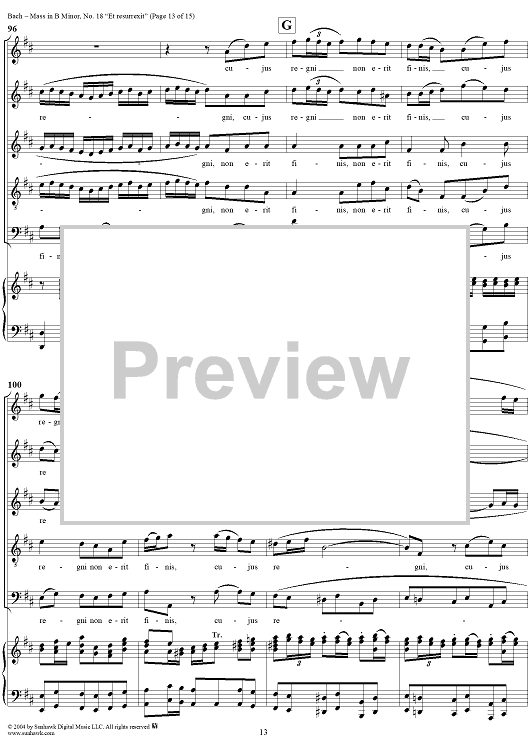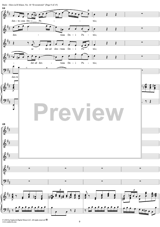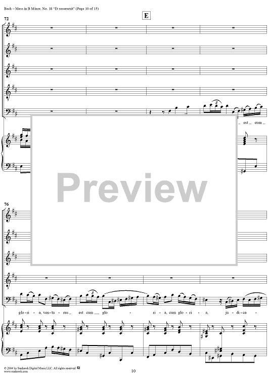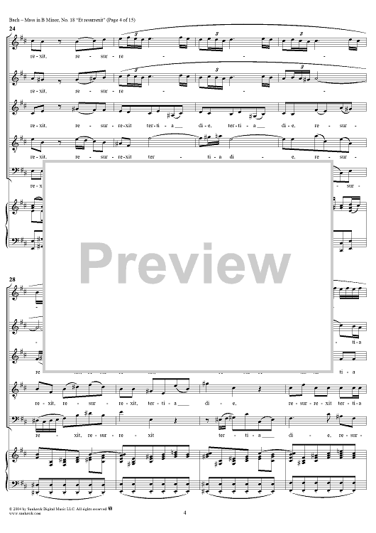 Digital Sheet Music for Mass in B Minor, BWV232, No. 18: "Et resurrexit" by Johann Sebastian Bach scored for Five-part Mixed Chorus; id:304798