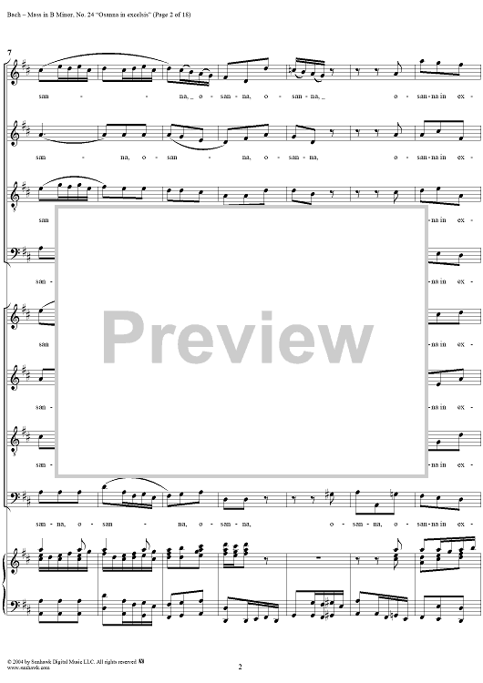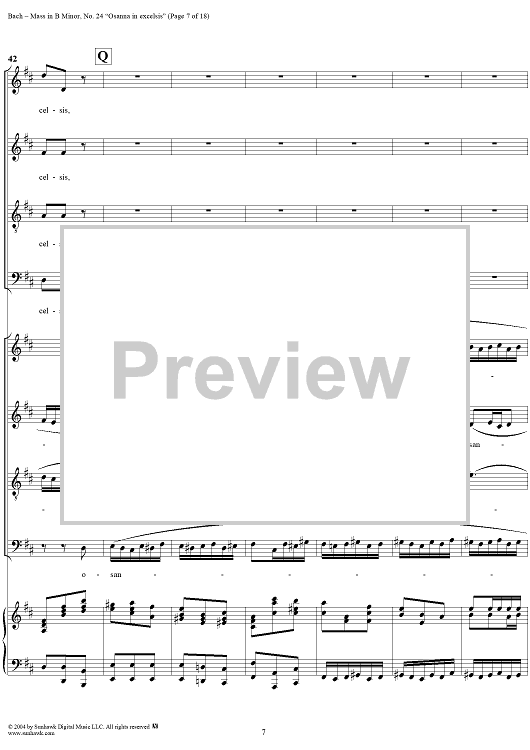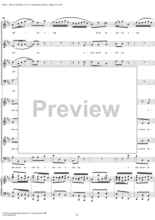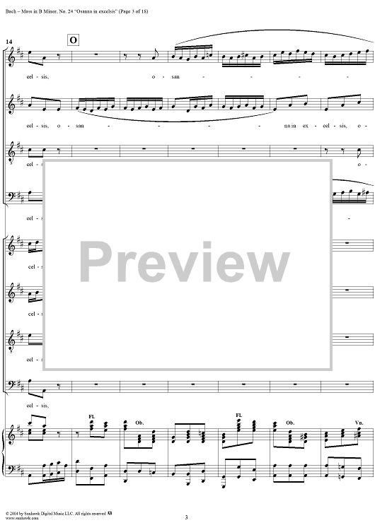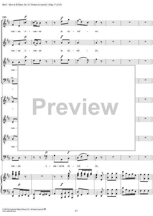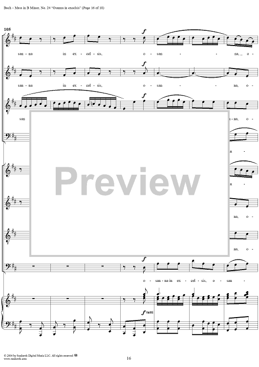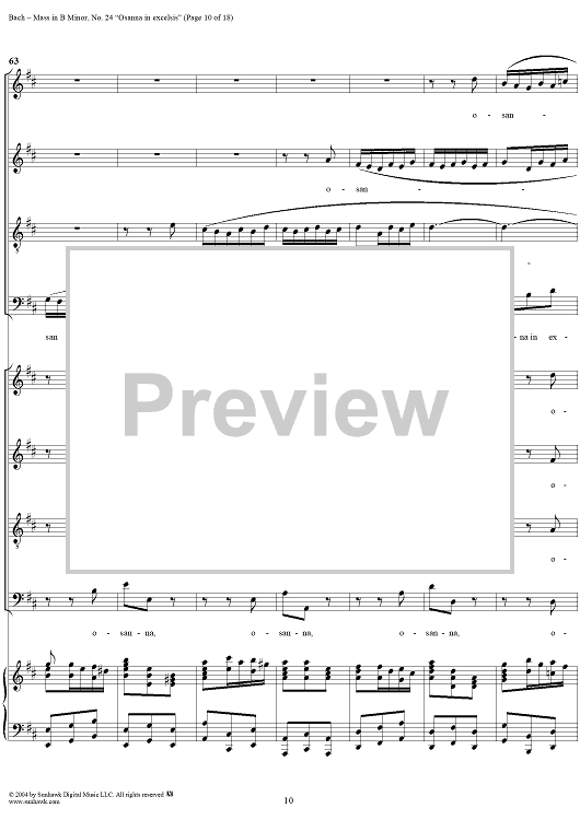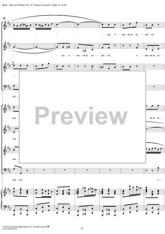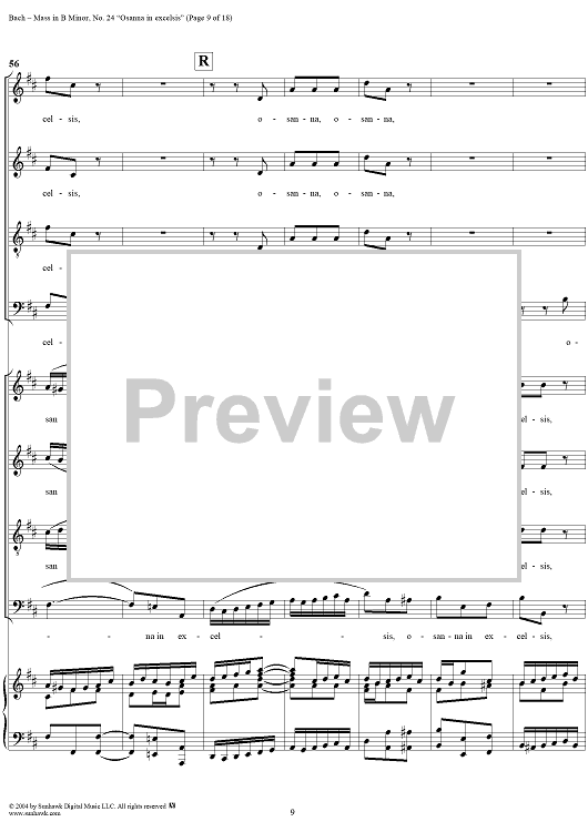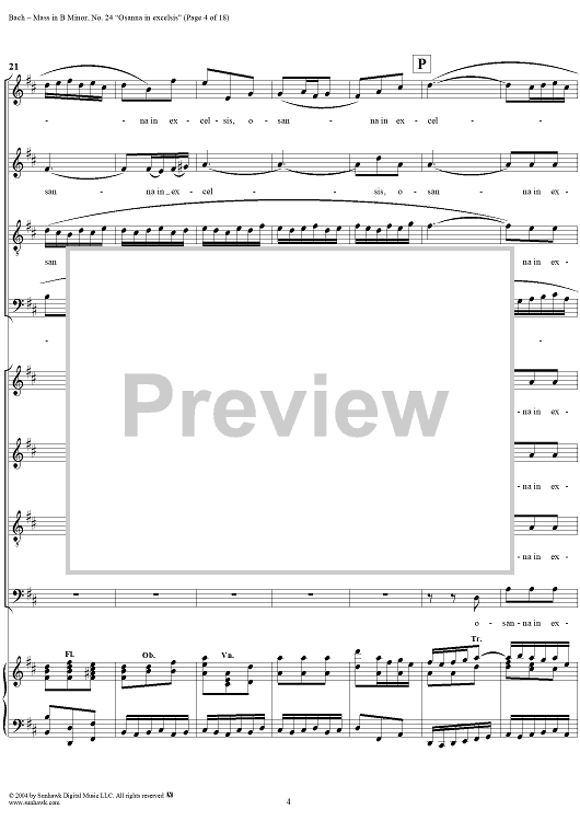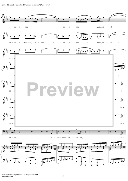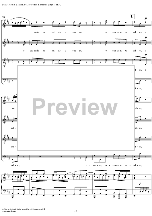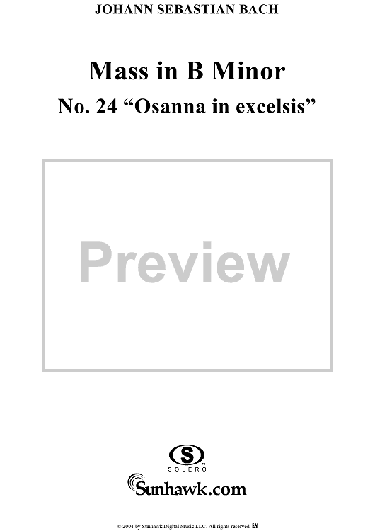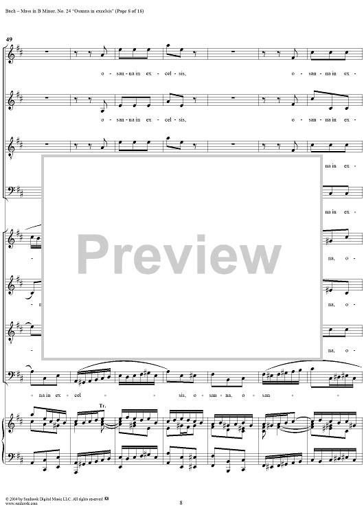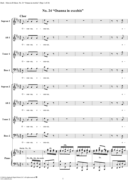 Digital Sheet Music for Mass in B Minor, BWV232, No. 24: "Osanna in excelsis" by Johann Sebastian Bach scored for Four-part Mixed Chorus; id:304802