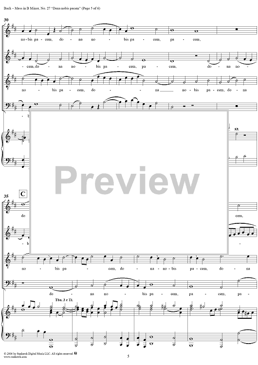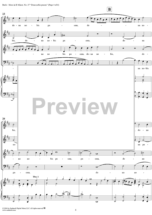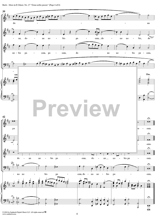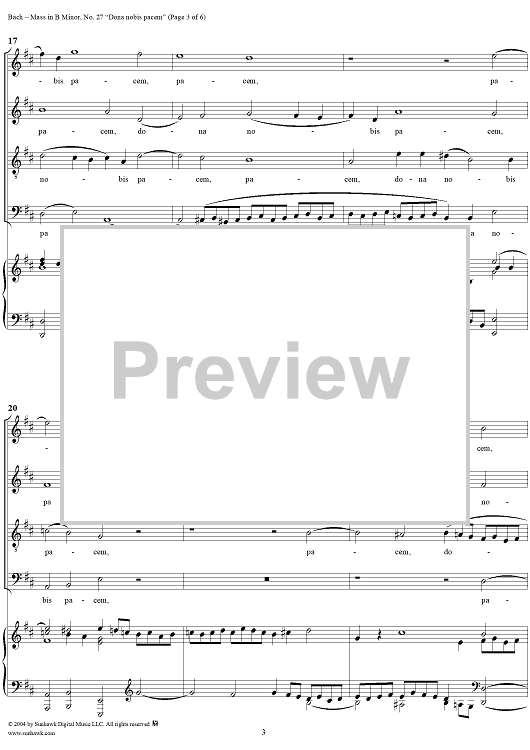 Digital Sheet Music for Mass in B Minor, BWV232, No. 27: "Dona nobis pacem" by Johann Sebastian Bach scored for Four-part Mixed Chorus/Piano; id:304805
