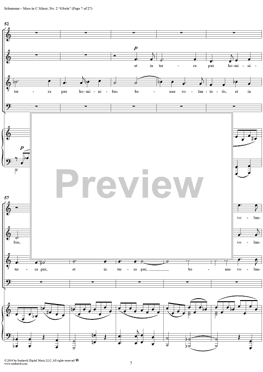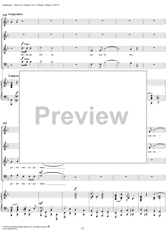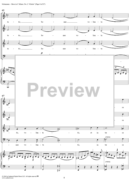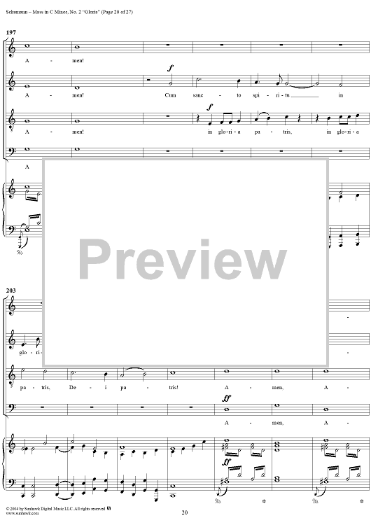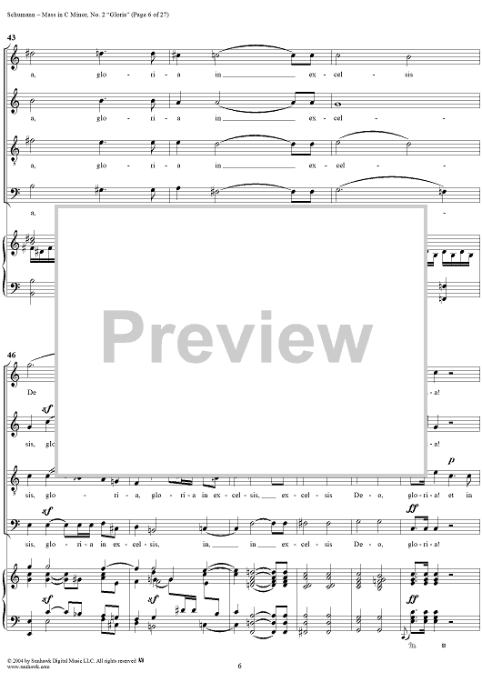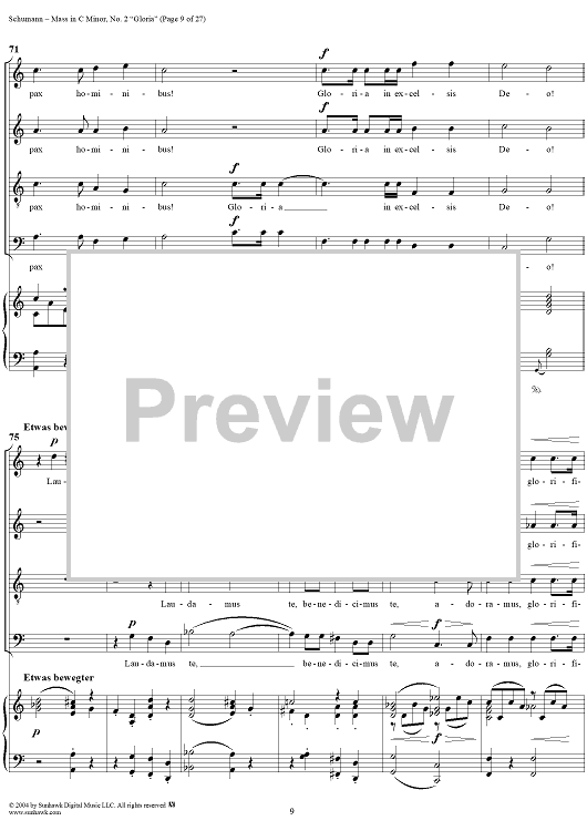 Digital Sheet Music for Mass in C Minor, Op. 147: No. 2, Gloria by Robert Schumann scored for Four-part Mixed Chorus/Piano; id:304637