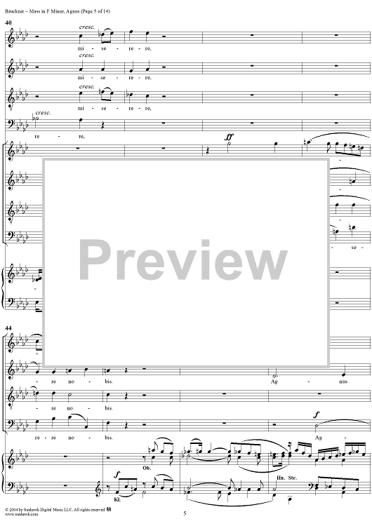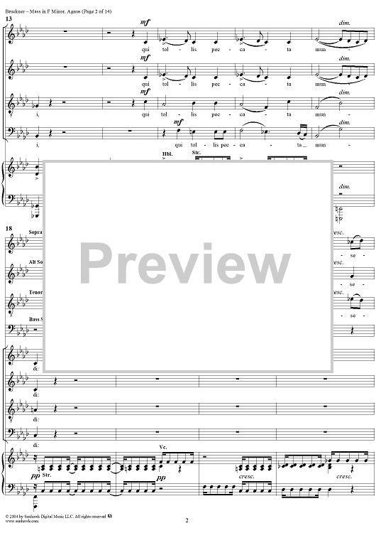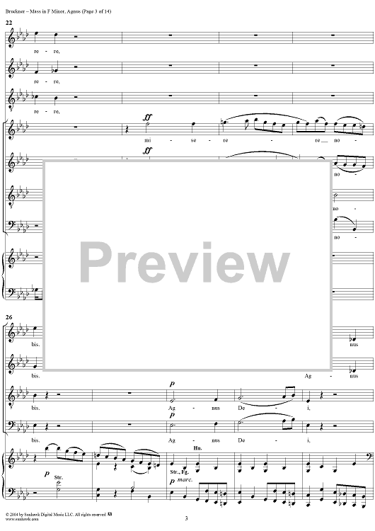Digital Sheet Music for Mass in F Minor: Agnus by Anton Bruckner scored for Four-part Mixed Chorus/Piano; id:303093