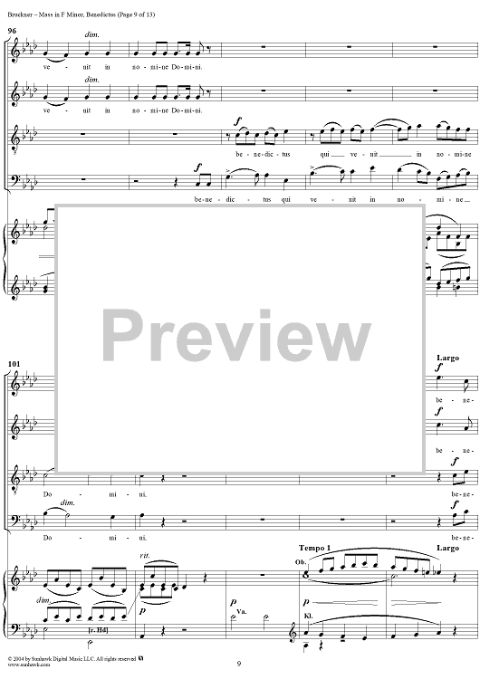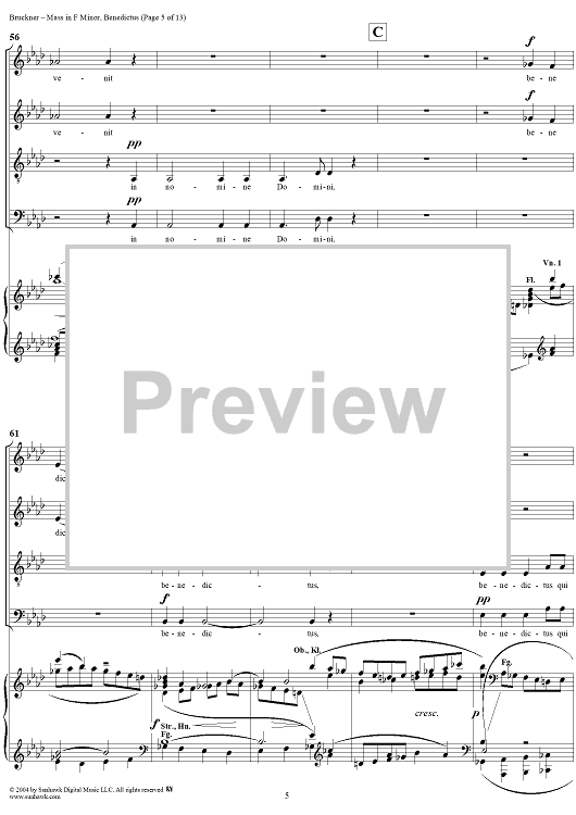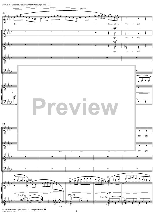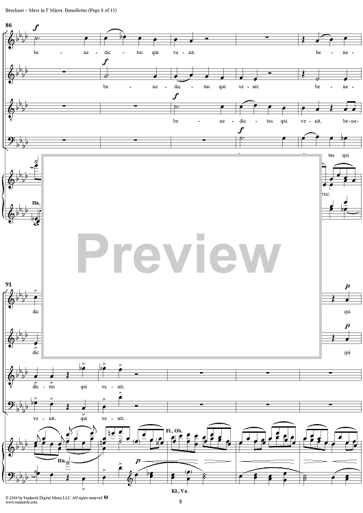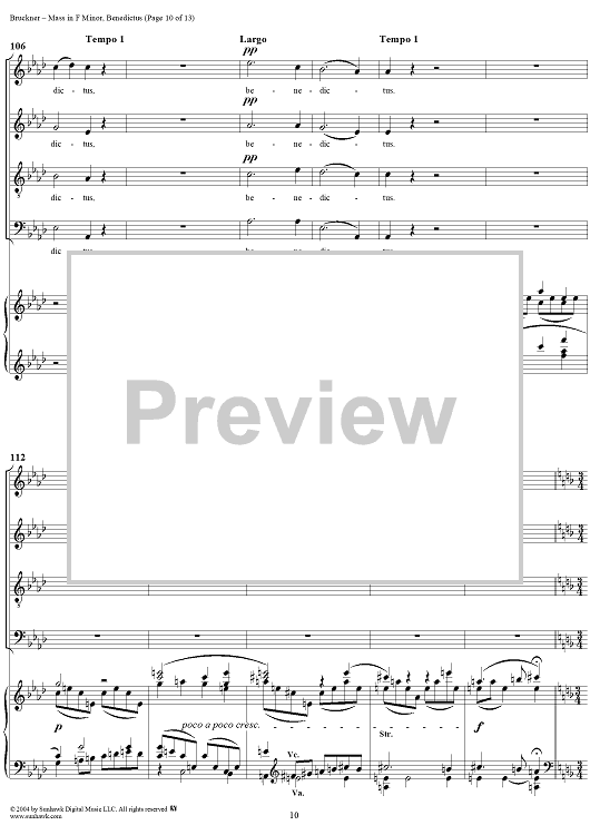 Digital Sheet Music for Mass in F Minor: Benedictus by Anton Bruckner scored for Four-part Mixed Chorus/Piano; id:303092