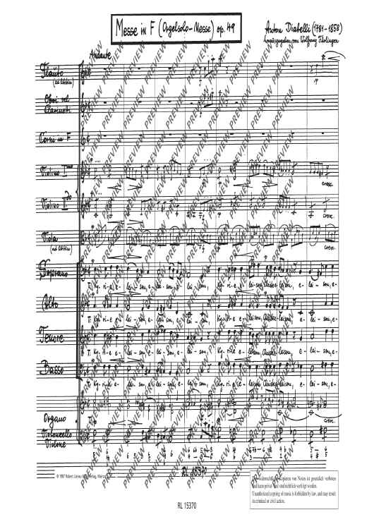 Digital Sheet Music for Mass in F - Score by Anton Diabelli, Wolfgang Fuerlinger scored for Choir And Orchestra; id:497422