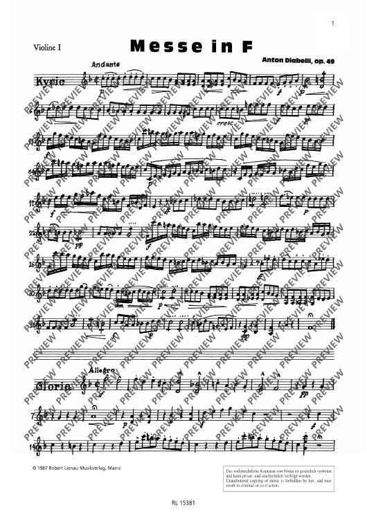 "Mass in F - Violin I" Sheet Music by Anton Diabelli