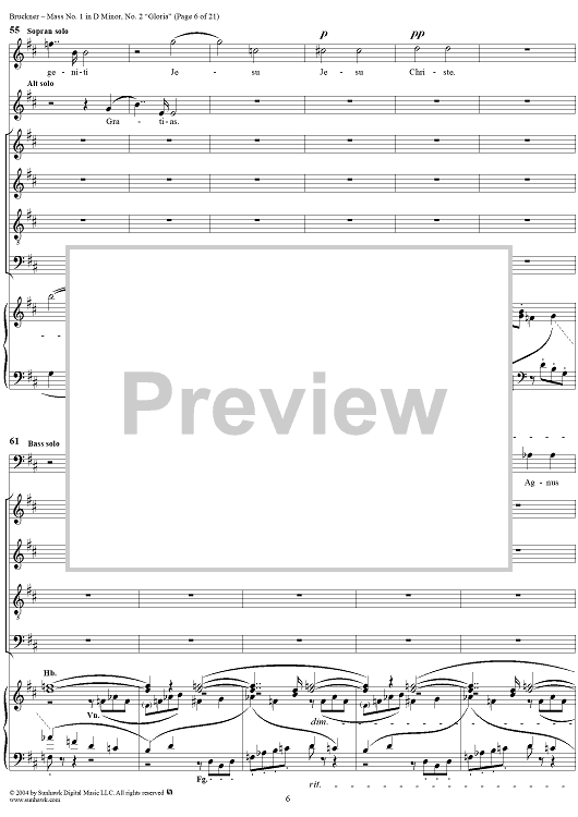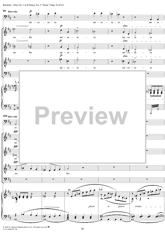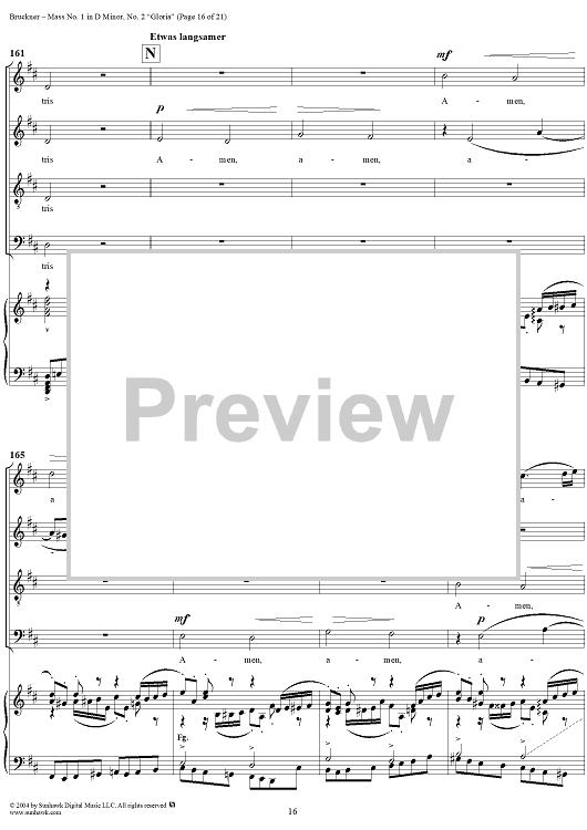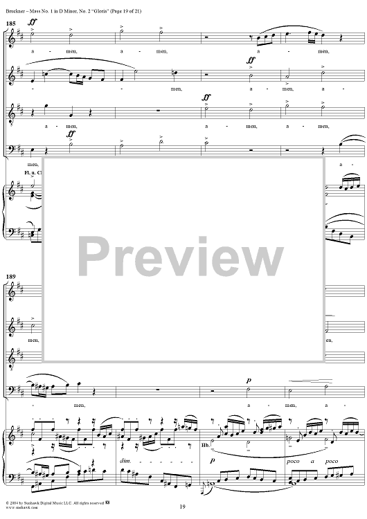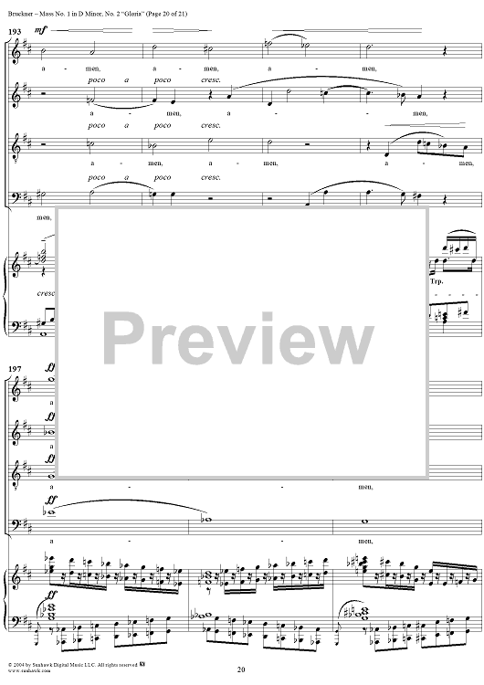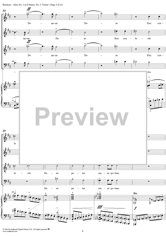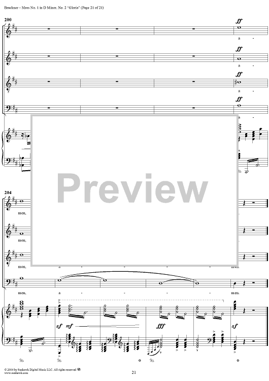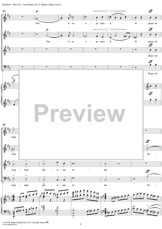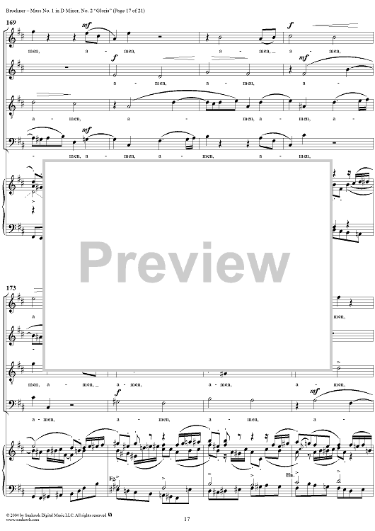 Digital Sheet Music for Mass No. 1 in D Minor: No. 2. Gloria by Anton Bruckner scored for Four-part Mixed Chorus/Piano; id:305864