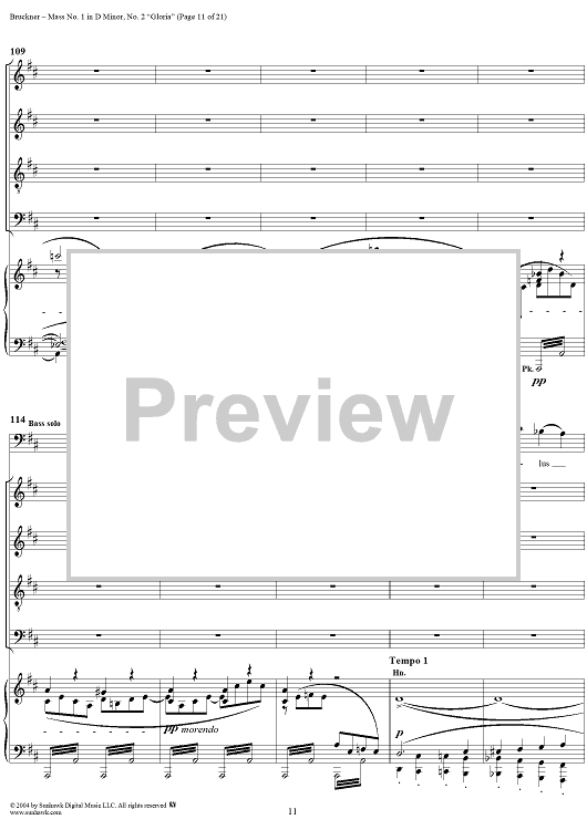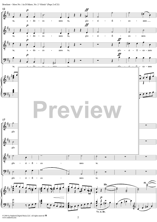 "Mass No. 1 in D Minor: No. 2. Gloria" Sheet Music by Anton Bruckner