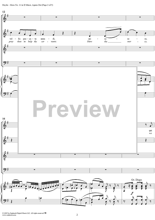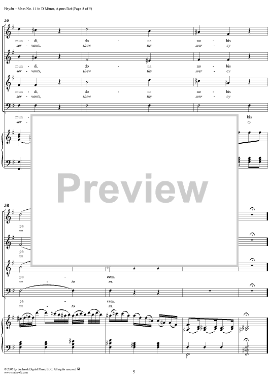 Digital Sheet Music for Mass No. 11 in D Minor, "Nelsonmesse": Agnus Dei by Franz Joseph Haydn scored for Four-part Mixed Chorus/Piano; id:306690