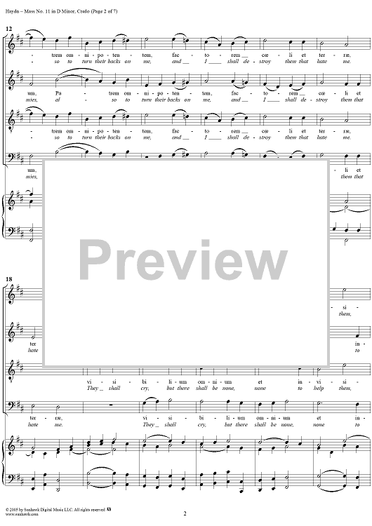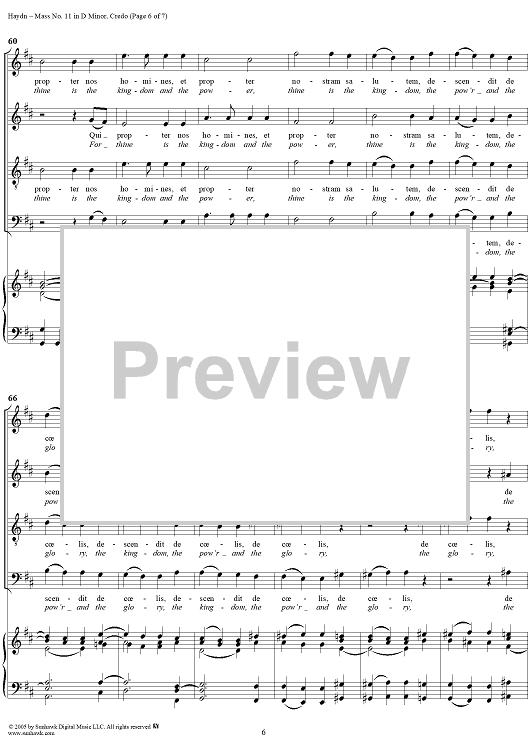 Digital Sheet Music for Mass No. 11 in D Minor, "Nelsonmesse": Credo by Franz Joseph Haydn scored for Four-part Mixed Chorus/Piano; id:306687