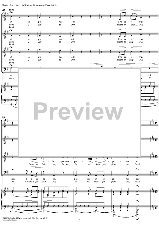 Digital Sheet Music for Mass No. 11 in D Minor, "Nelsonmesse": Et incarnatus by Franz Joseph Haydn scored for Four-part Mixed Chorus/Piano; id:306694