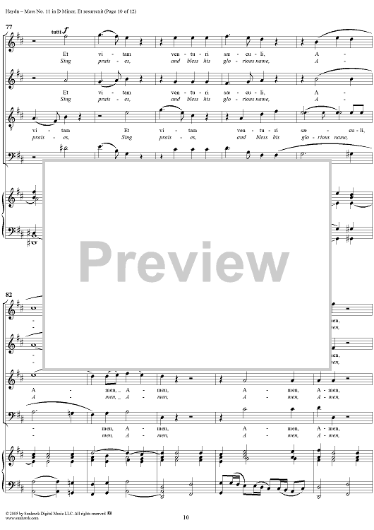 Digital Sheet Music for Mass No. 11 in D Minor, "Nelsonmesse": Et resurrexit by Franz Joseph Haydn scored for Four-part Mixed Chorus/Piano; id:306695