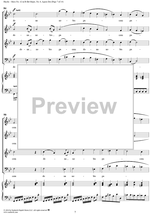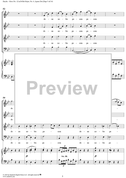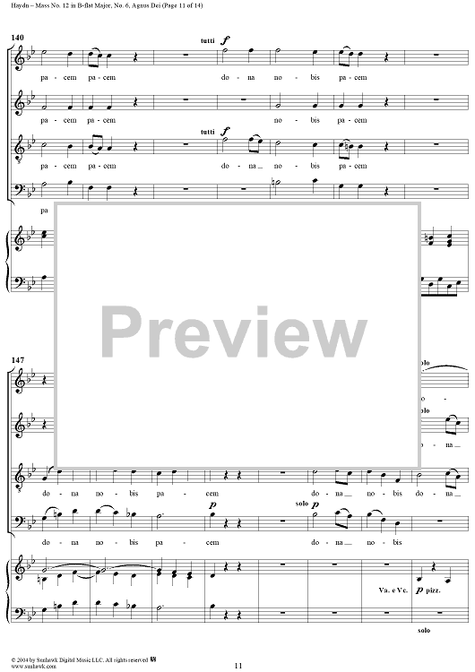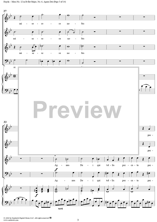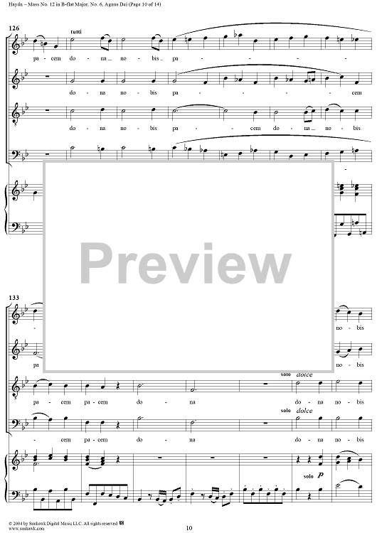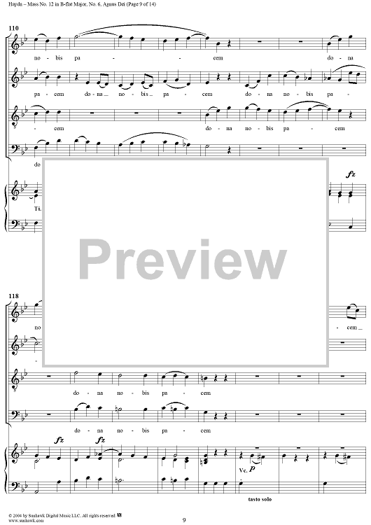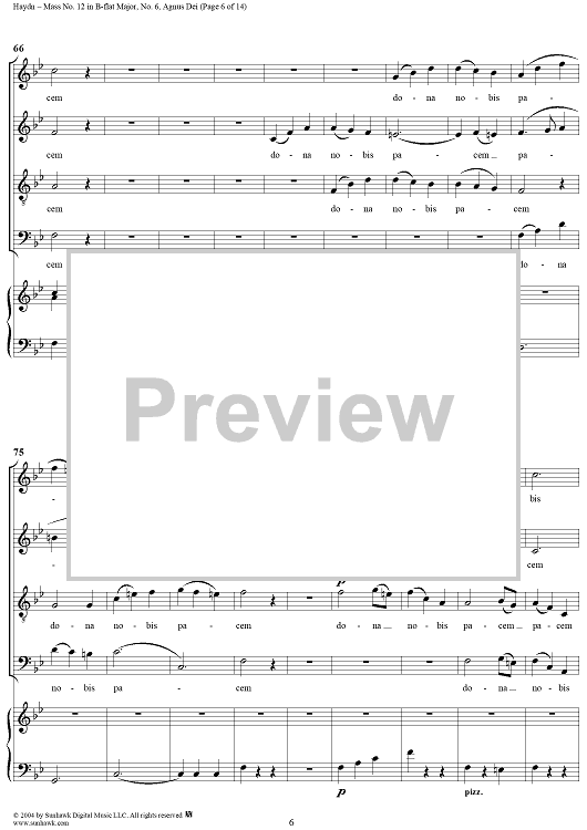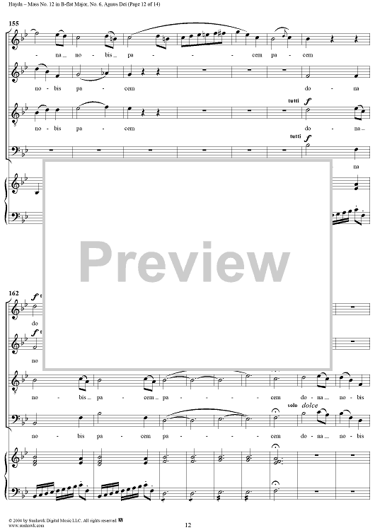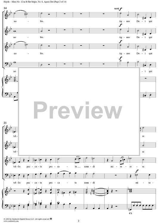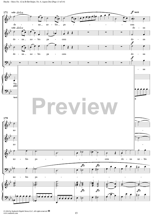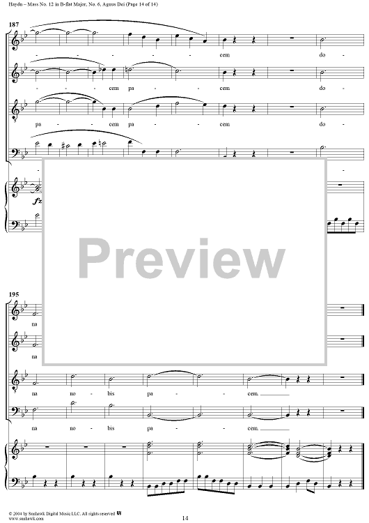 Digital Sheet Music for Mass No. 12 in B-flat Major, HobXXII/12, Agnus Dei by Franz Joseph Haydn scored for Four-part Mixed Chorus/Piano; id:298168