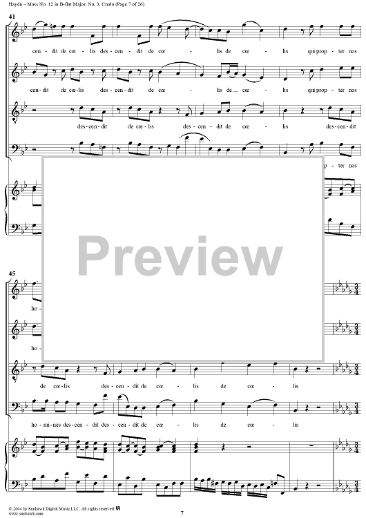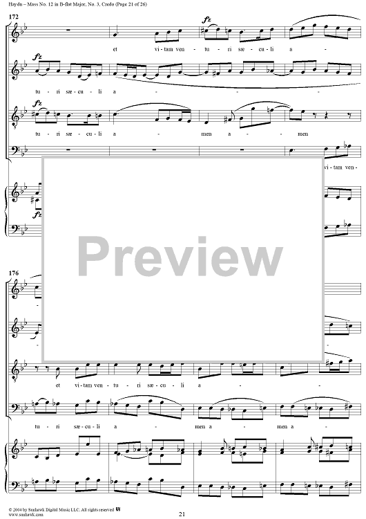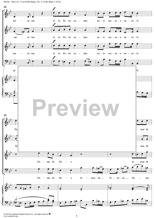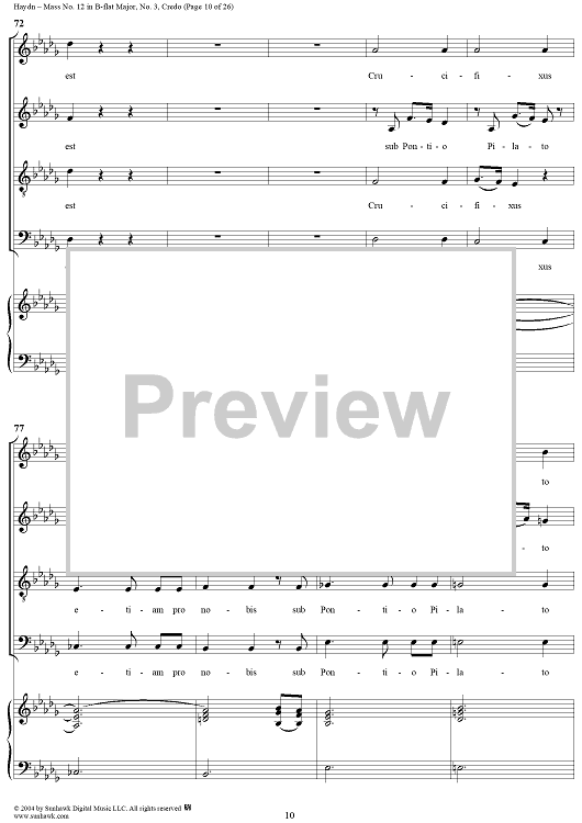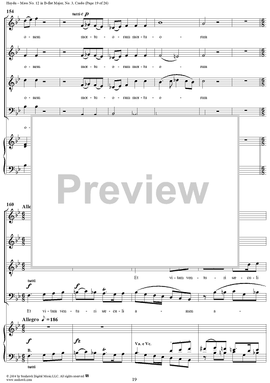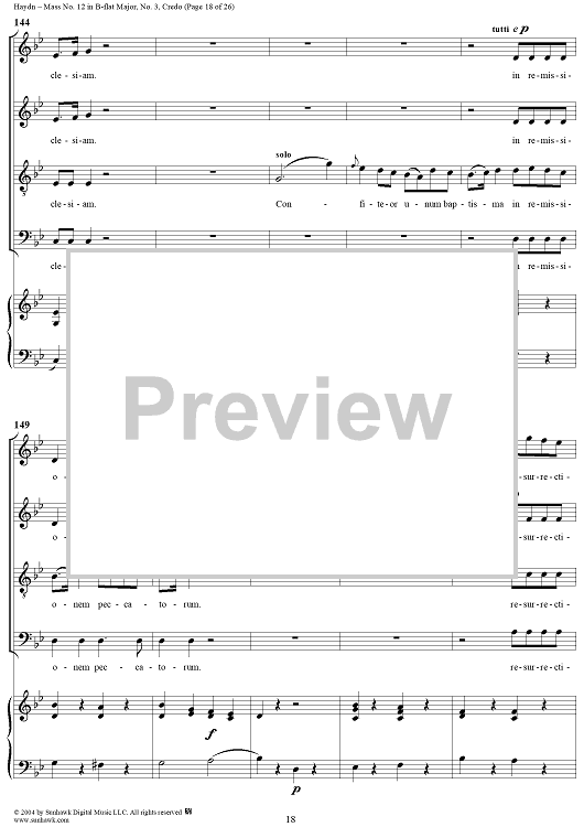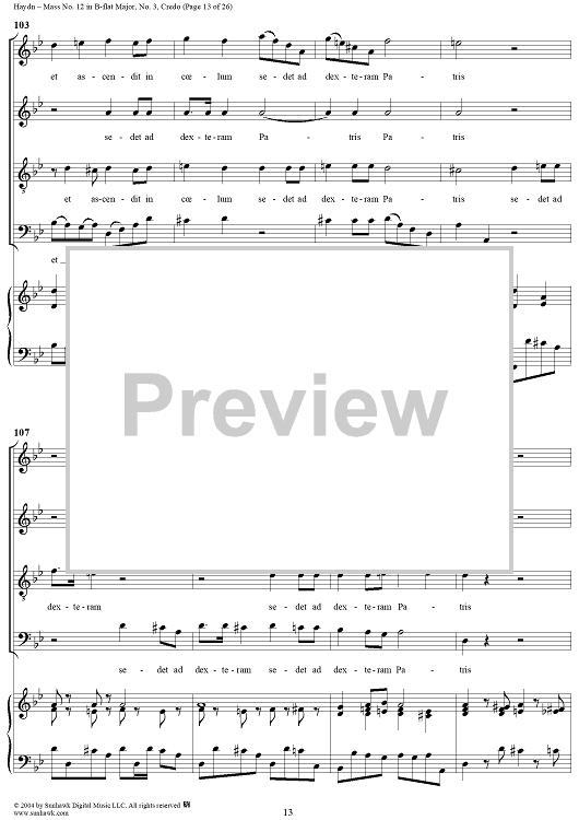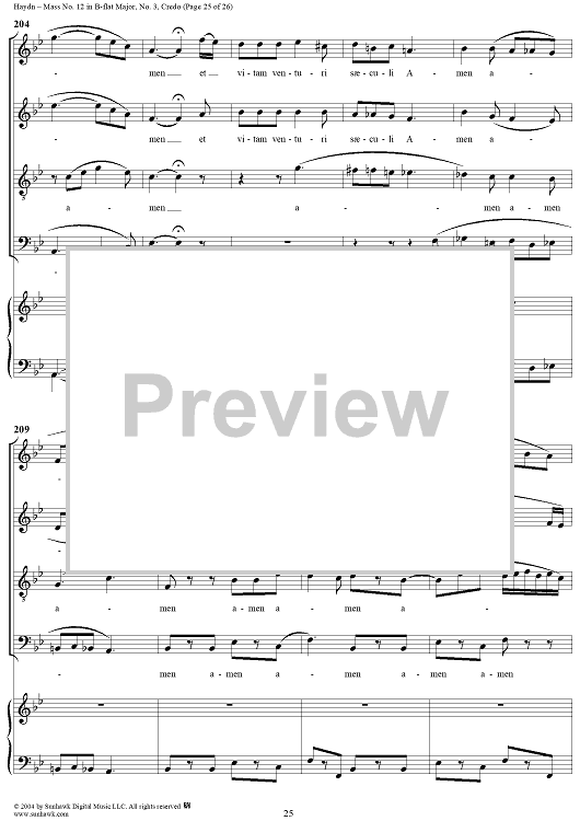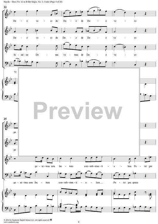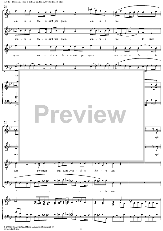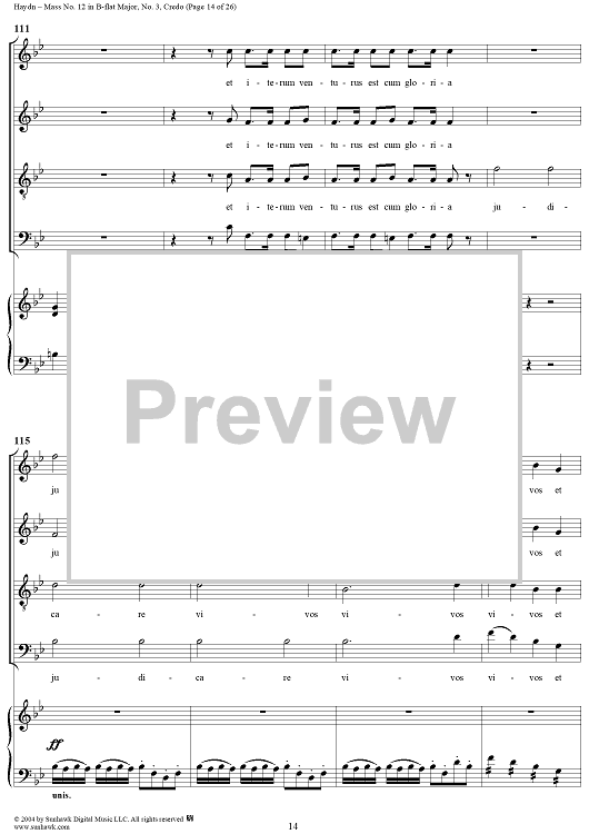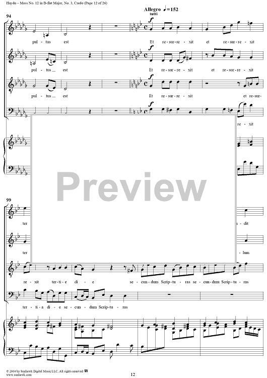 Digital Sheet Music for Mass No. 12 in B-flat Major, HobXXII/12, Credo by Franz Joseph Haydn scored for Four-part Mixed Chorus/Piano; id:298165