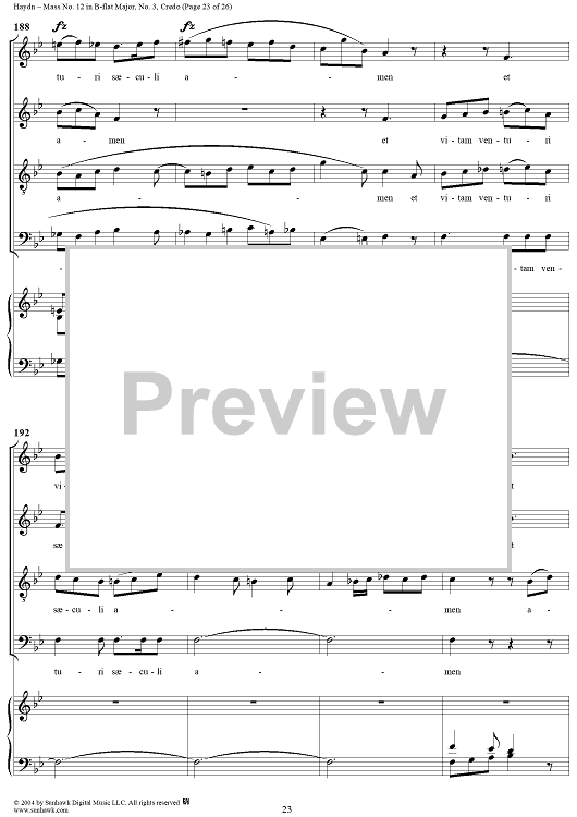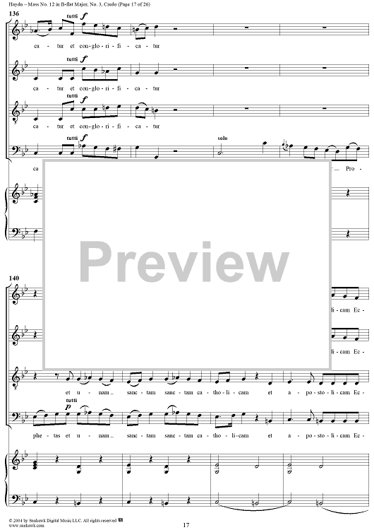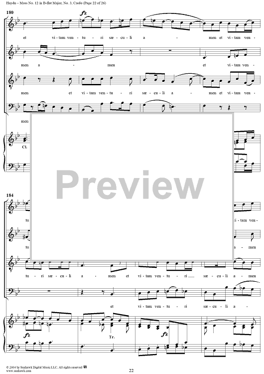 "Mass No. 12 in B-flat Major, HobXXII/12, Credo" Sheet Music by Franz Joseph Haydn