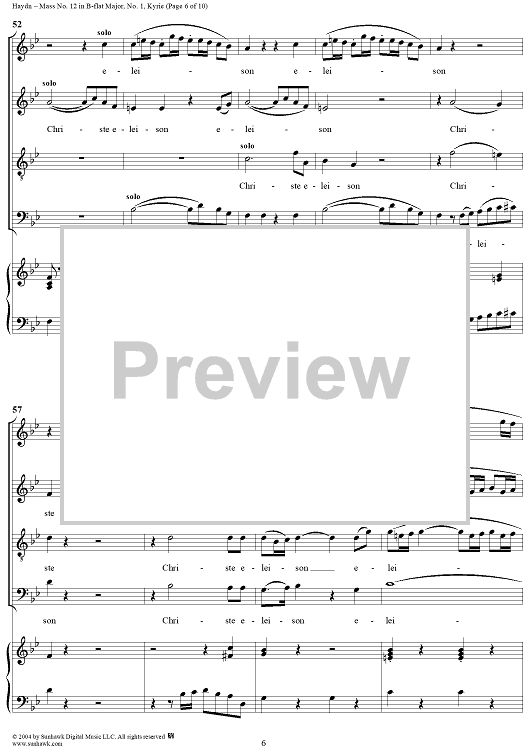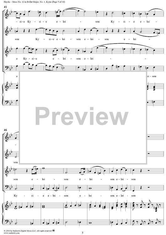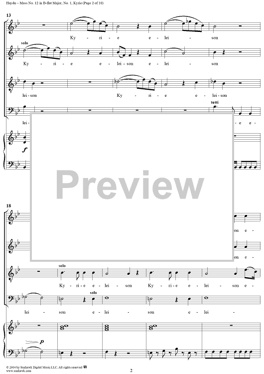 Digital Sheet Music for Mass No. 12 in B-flat Major, HobXXII/12, Kyrie by Franz Joseph Haydn scored for Four-part Mixed Chorus/Piano; id:298163