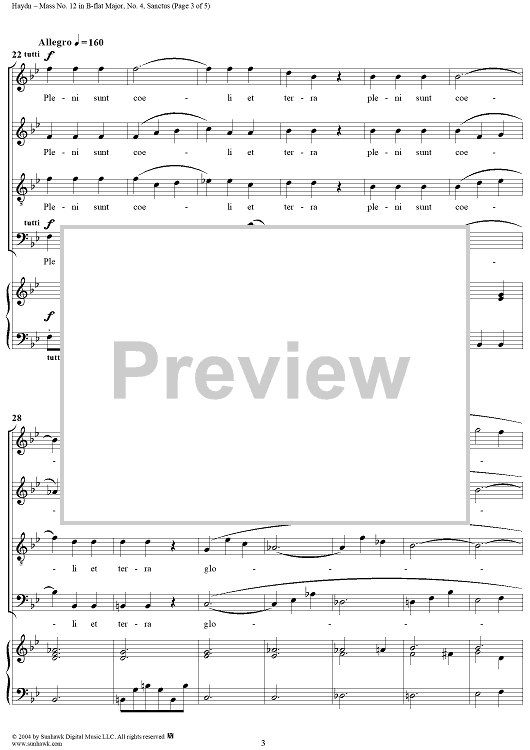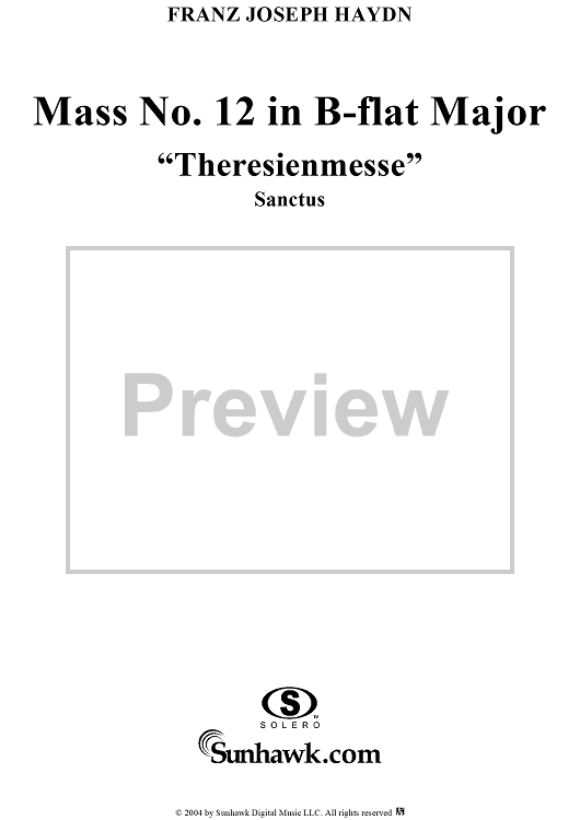 Digital Sheet Music for Mass No. 12 in B-flat Major, HobXXII/12, Sanctus by Franz Joseph Haydn scored for Four-part Mixed Chorus/Piano; id:298166
