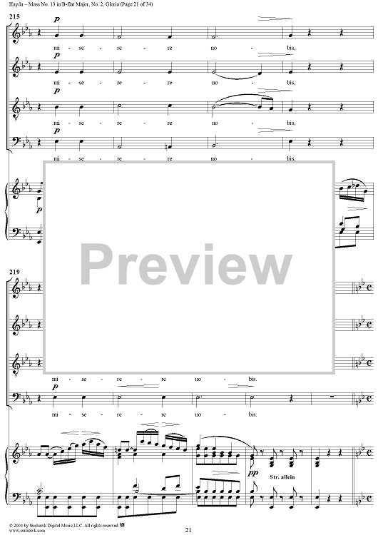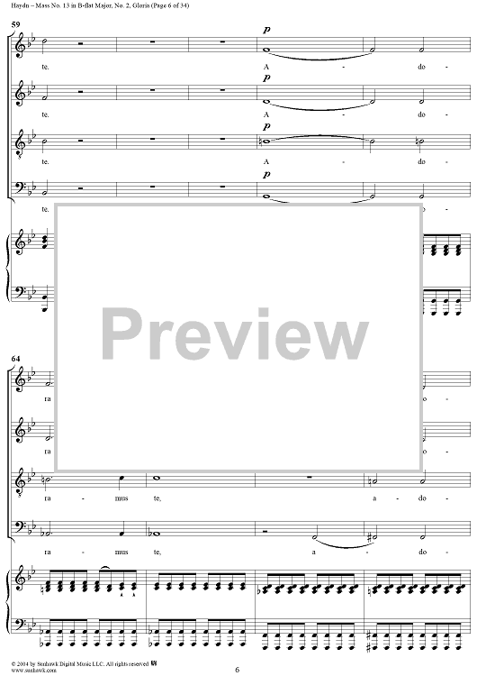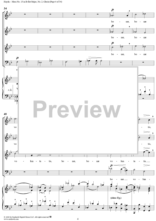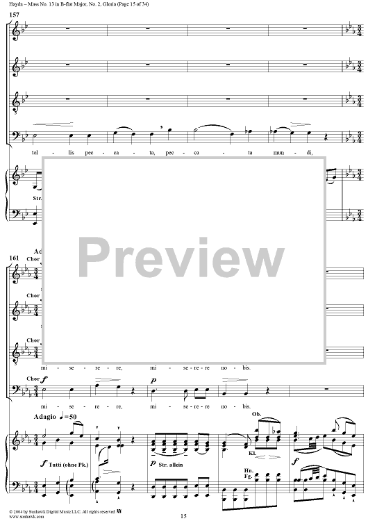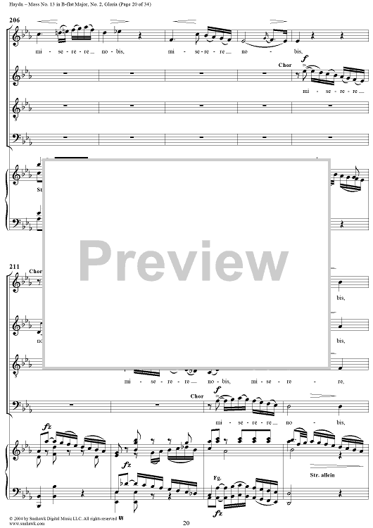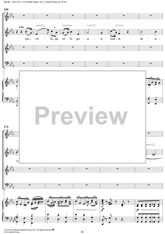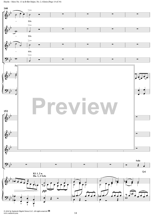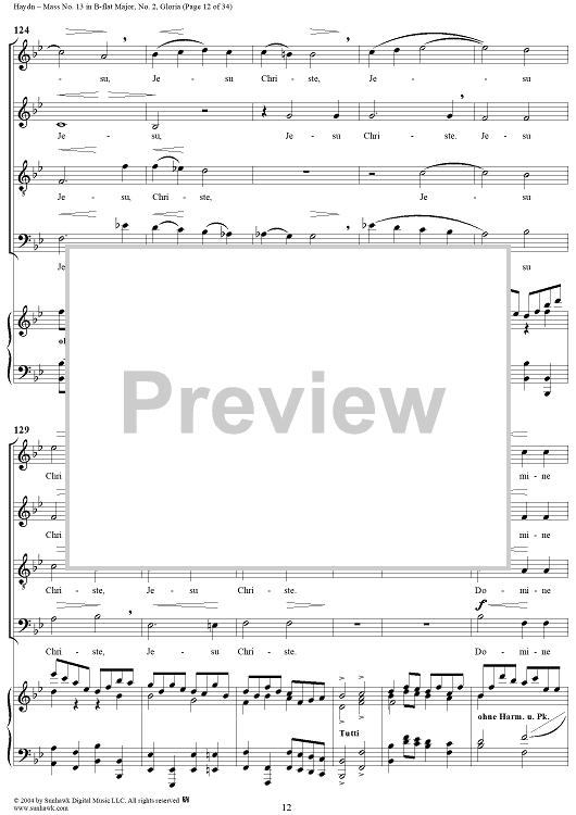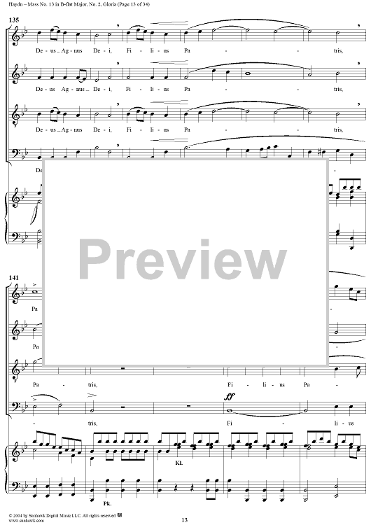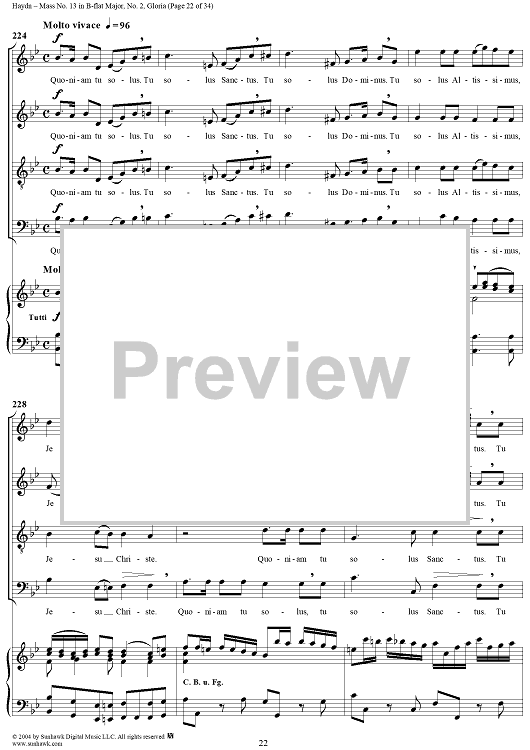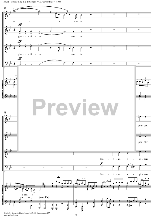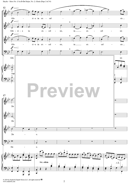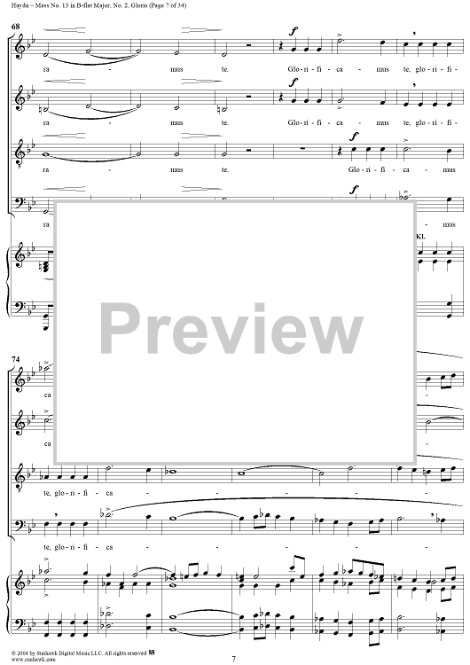 Digital Sheet Music for Mass No. 13 in B-flat Major: No. 2, Gloria by Franz Joseph Haydn scored for Four-part Mixed Chorus/Piano; id:303000