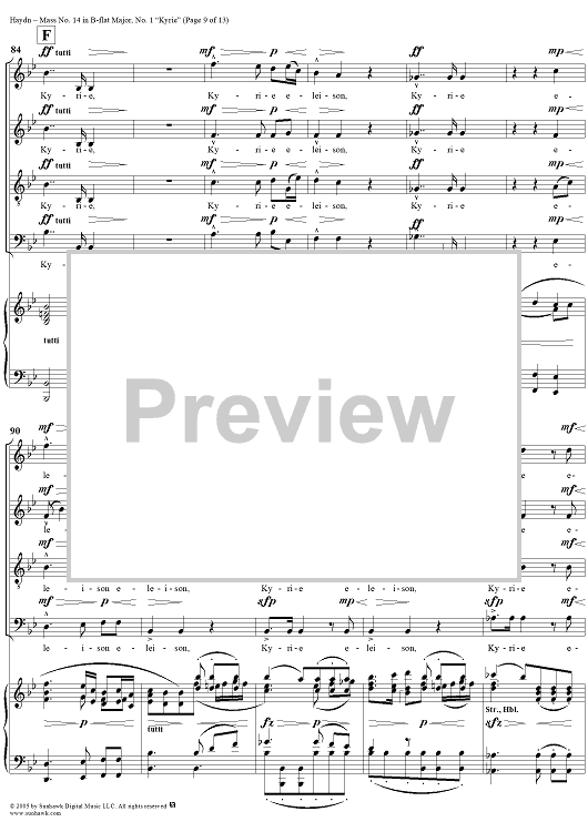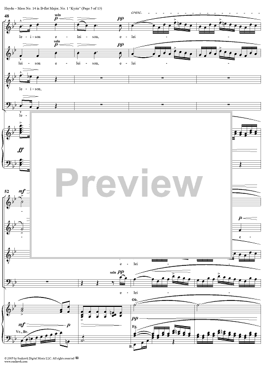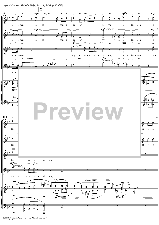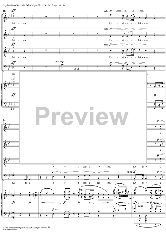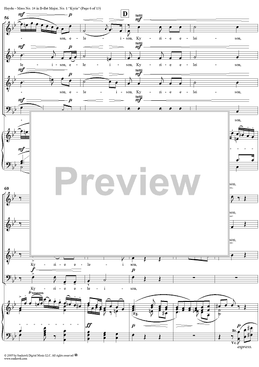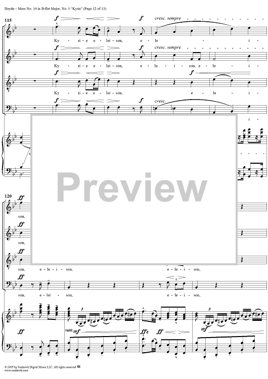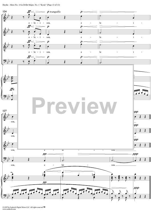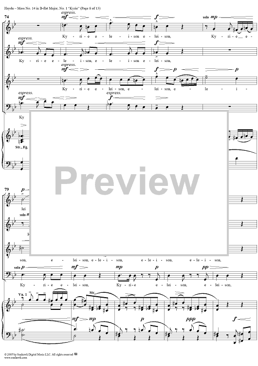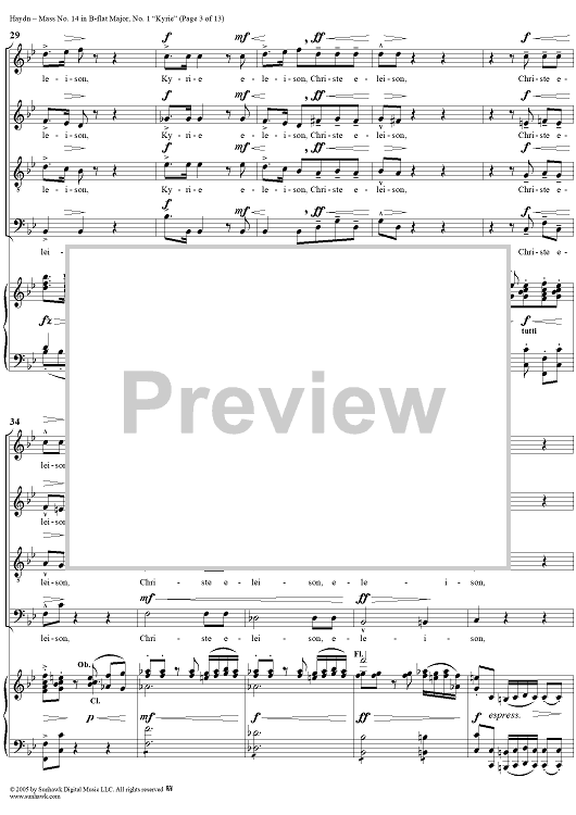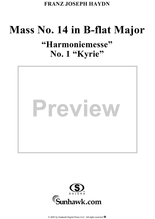 Digital Sheet Music for Mass No. 14 in B-flat Major, "Harmoniemesse"/"Wind Band Mass": No. 1. Kyrie by Franz Joseph Haydn scored for Four-part Mixed Chorus/Piano; id:306851