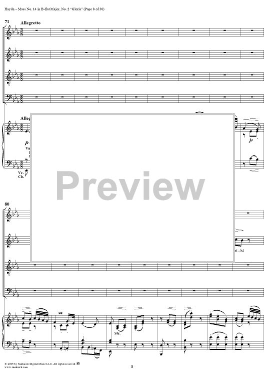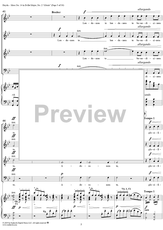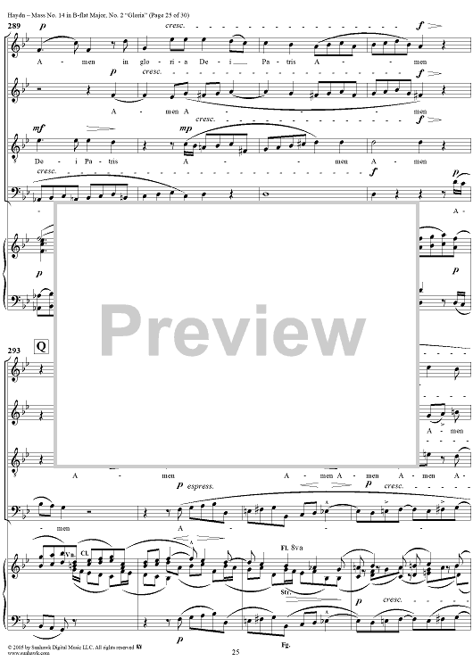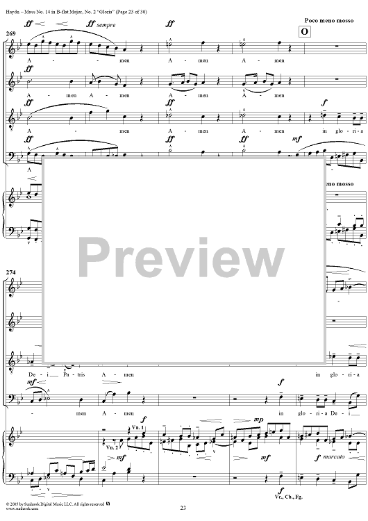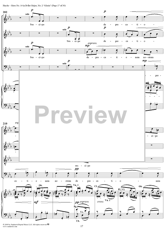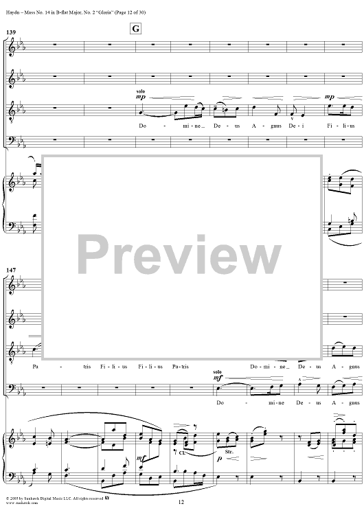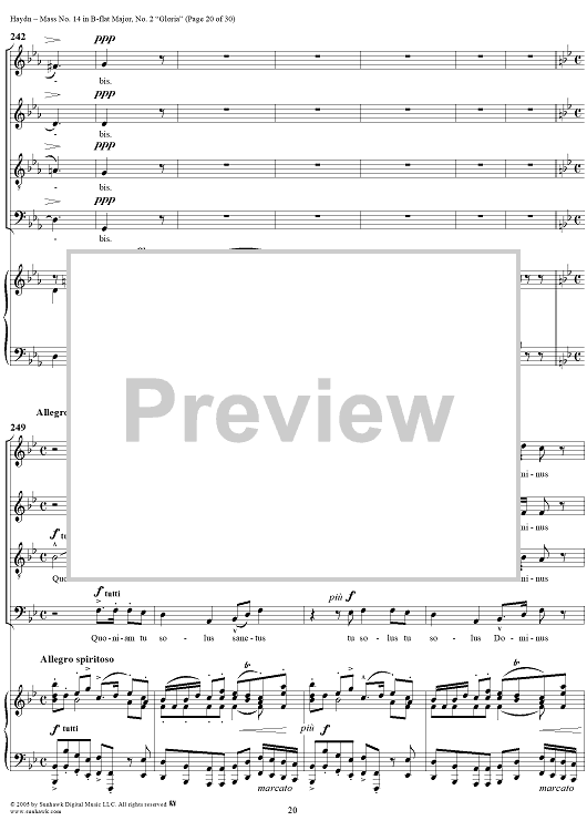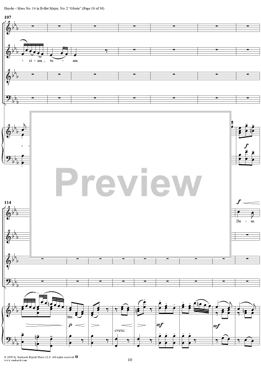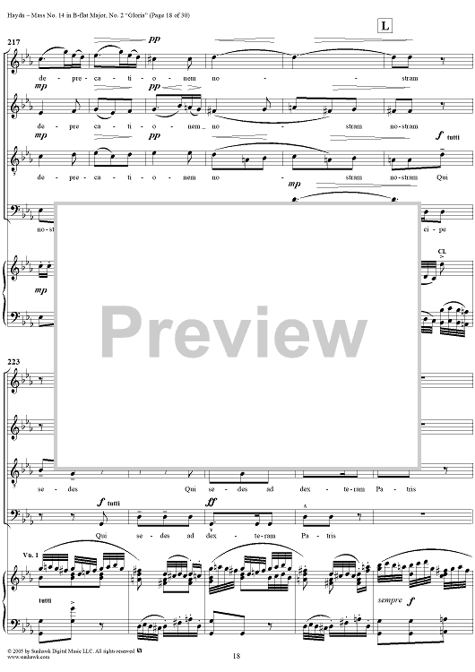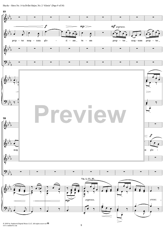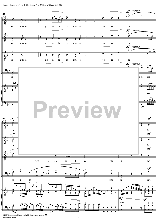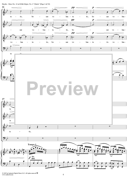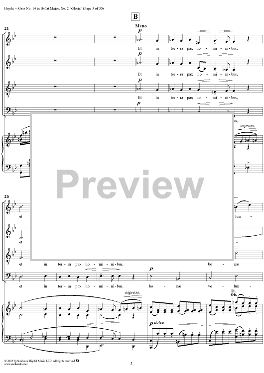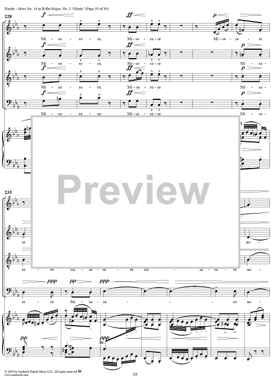 Digital Sheet Music for Mass No. 14 in B-flat Major, "Harmoniemesse"/"Wind Band Mass": No. 2. Gloria by Franz Joseph Haydn scored for Four-part Mixed Chorus/Piano; id:306852