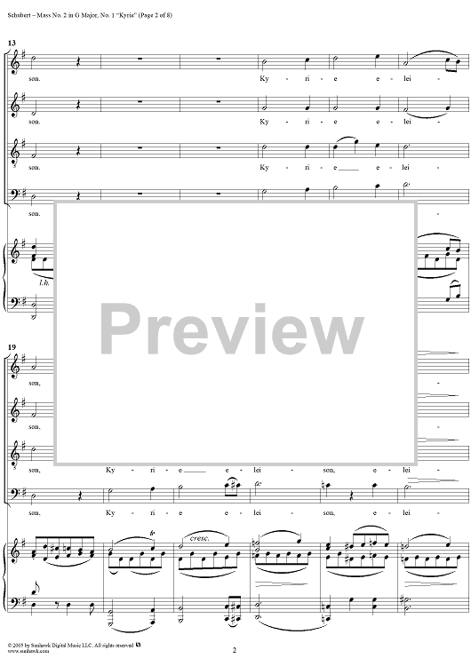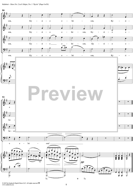 Digital Sheet Music for Mass No. 2 in G Major, D167: No. 1, Kyrie by Franz Schubert scored for Four-part Mixed Chorus/Piano; id:304578