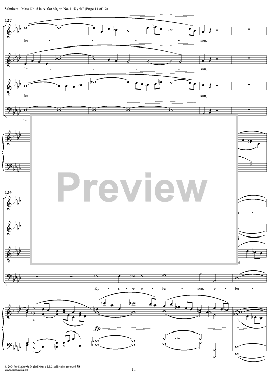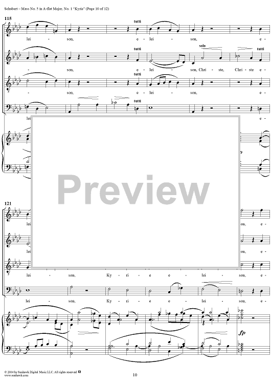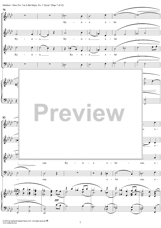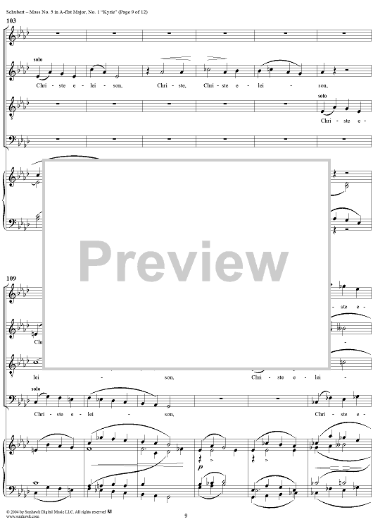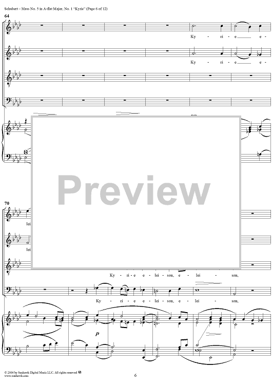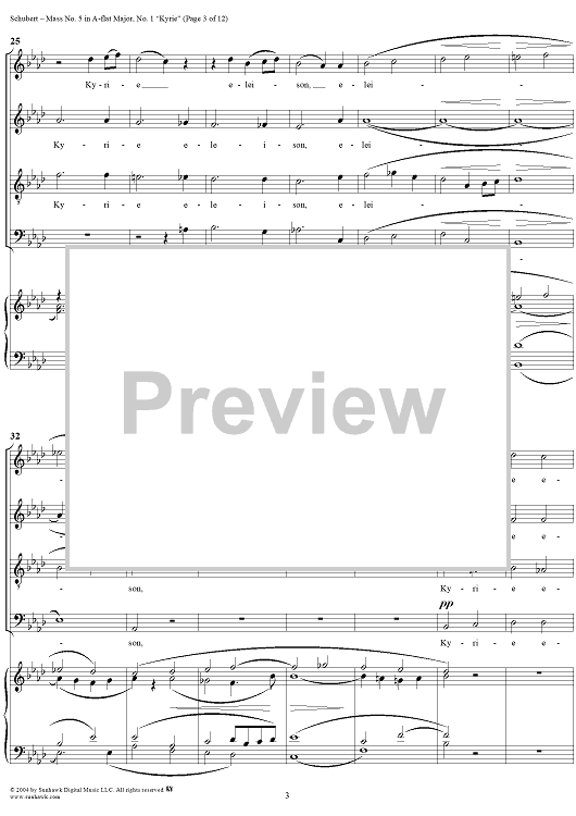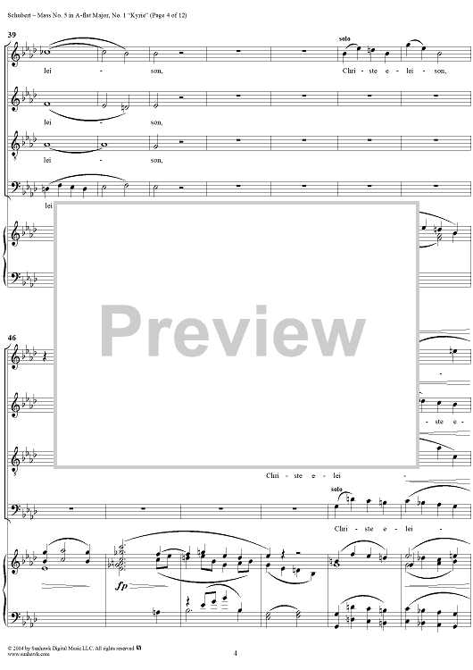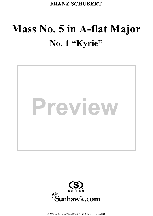 Digital Sheet Music for Mass No. 5 in A-flat Major, D678, No. 1: Kyrie by Franz Schubert scored for Four-part Mixed Chorus/Piano; id:304489