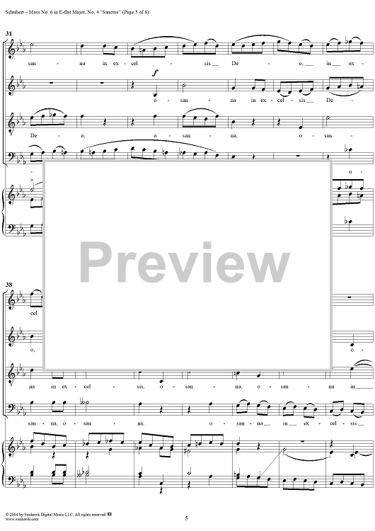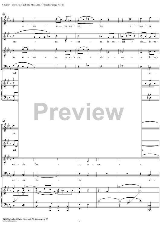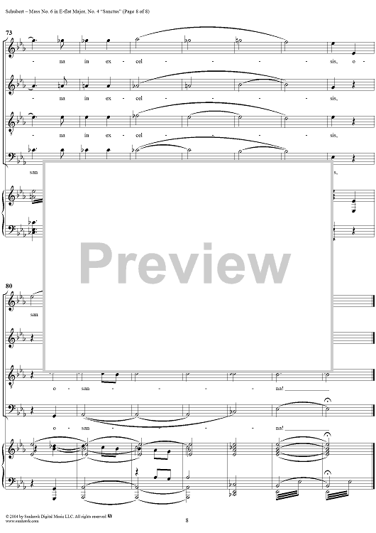 Digital Sheet Music for Mass No. 6 in E-flat Major, D950: No. 4, Sanctus by Franz Schubert scored for Four-part Mixed Chorus/Piano; id:304632