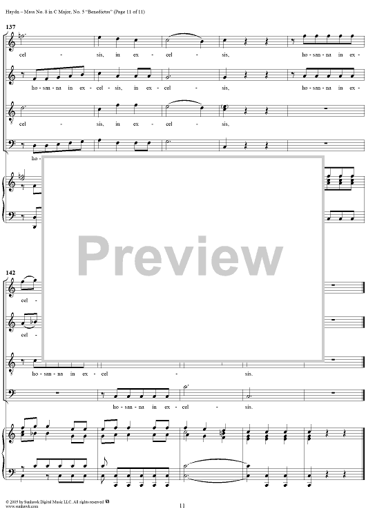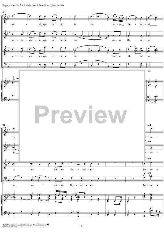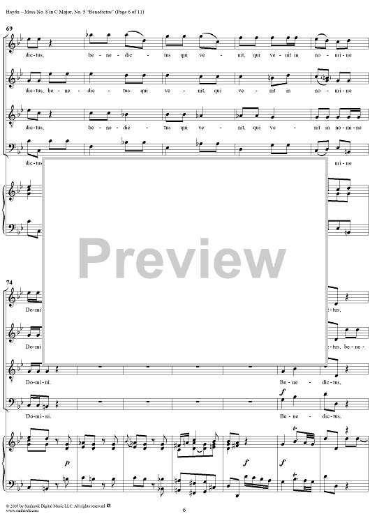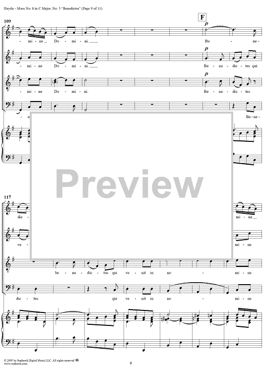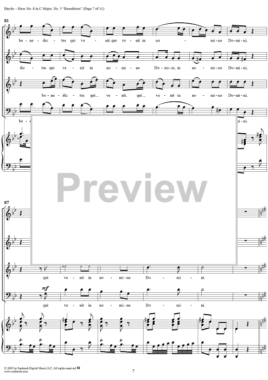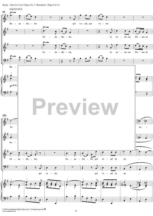 Digital Sheet Music for Mass No. 8 in C Major, "Mariazellermesse": No. 5, Benedictus by Franz Joseph Haydn scored for SATB Chorus/Organ; id:306837