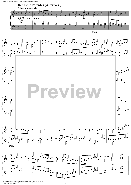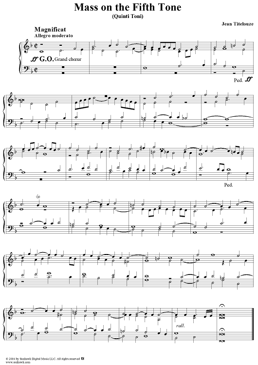 Digital Sheet Music for Mass on the Fifth Tone by Jean Titelouze scored for Organ Solo; id:296116