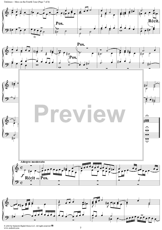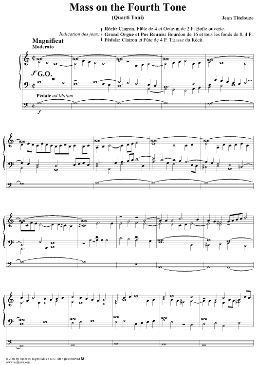 Digital Sheet Music for Mass on the Fourth Tone by Jean Titelouze scored for Organ Solo; id:296115
