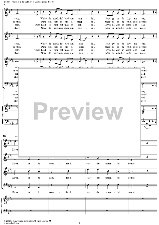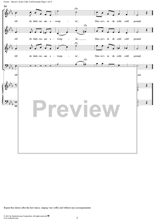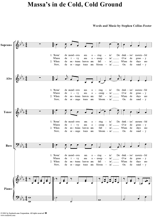 Digital Sheet Music for Massa's in de Cold, Cold Ground by Stephen Foster scored for Four-part Mixed Chorus/Piano; id:255258