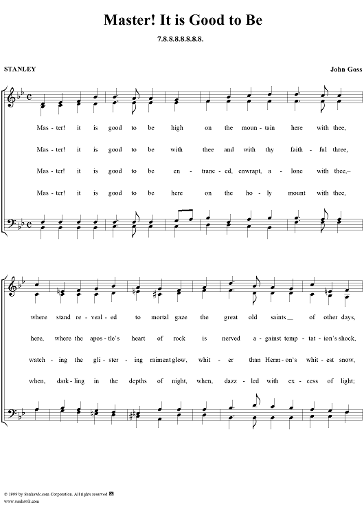 Digital Sheet Music for Master! It is Good to Be by John Goss scored for Four-part Mixed Chorus; id:268946