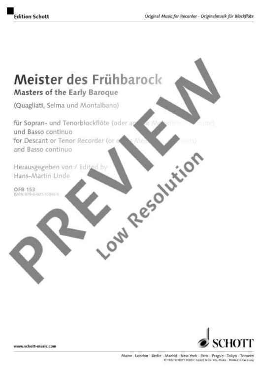 Digital Sheet Music for Masters of the Early Baroque by scored for Soprano- Or Tenor Recorder (or Other Melodic Instruments) And Basso Continuo; id:476179