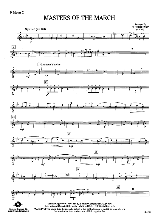 Digital Sheet Music for Masters of the March - F Horn 2 by Various, Chris Sharp scored for Concert Band; id:438798